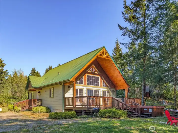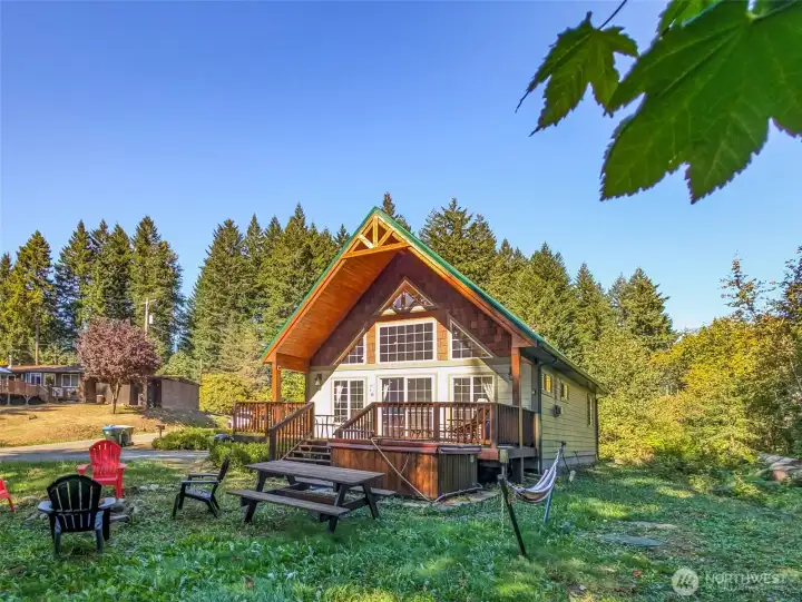 Turnkey 3BR Chalet with Hot Tub, Rental Income Potential, and Walkability — Charming craftsman-style chalet in Packwood’s desirable Skyline neighborhood—walkable to local breweries, shops, and trails. This 3BR/2BA retreat features birch floors, hickory cabinets, pine ceilings, and timber accents that create warm mountain character. Relax by the fireplace, soak in the forest-view hot tub, or watch elk pass by. Enjoy a covered deck, outdoor fire pit, and modern amenities including Wi-Fi and new furnishings. Just 20 minutes to White Pass Ski Area and Mt. Rainier, this home offers strong short-term rental potential and year-round appeal.