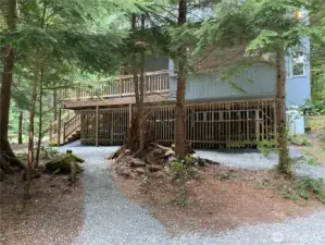 5 acres of serenity & a private timber frame retreat secluded among the trees in highly desirable Crystal River Ranch. Cedar home with rustic exposed beams, vaulted ceilings & freshly sanded & oiled wood floors. The spacious kitchen with its granite countertops, lots of cabinets & pantry is open to the dining rm & large family rm with propane FP/heater & a wall of windows. Upstairs is the primary bedroom, a matching guest rm & an all new full bath. Downstairs is another guest rm, the 1/2 bath & utility rm. Relax on the new cedar deck, covered porch or gazebo. 240 sq ft storage building. Most furniture included. Community clubhouse, playground, ball fields & trail system. Take in this secluded acreage let your cares & worries melt away.