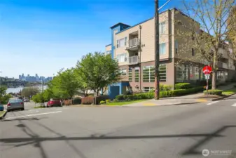This boutique condominium sits on the top floor and offers 2 rare designated parking spaces all in a secured garage setting! The kitchen with eating bar over looks the very spacious living room with gas fireplace. Lots of features including skylights and a spacious living room with a gas fireplace. There are 2 good size bedrooms both with walk-in closets and bathrooms. Entertaining sized balcony spans entire unit and there is secure storage. Hard to find ADA accessibility with features that include x-wide doorways for easy access in and out of rooms. Location is everything - just steps from Burke-Gilman Trail. Walk score of 81 with Gasworks Park & UW nearby and with Lake Union a block away, you can easily drop your kayak in at anytime!