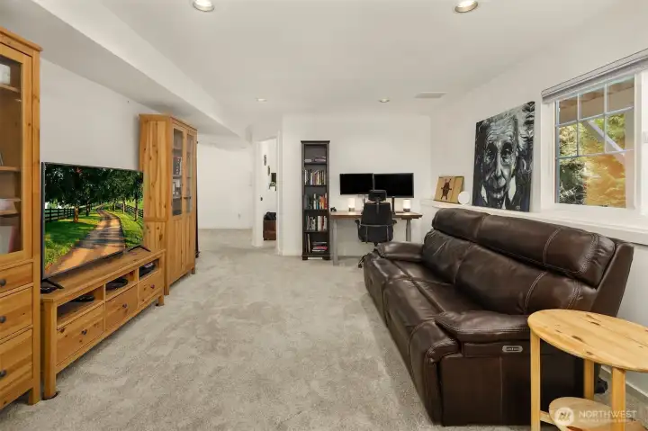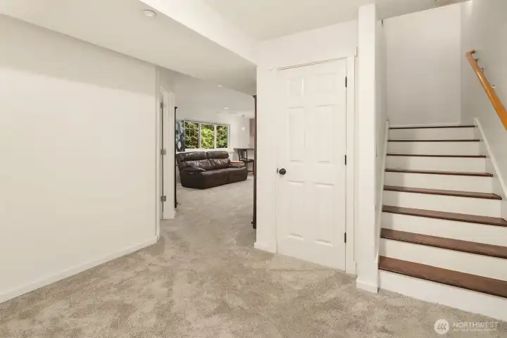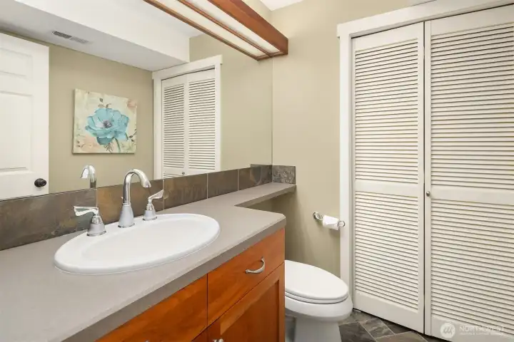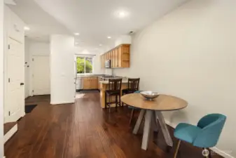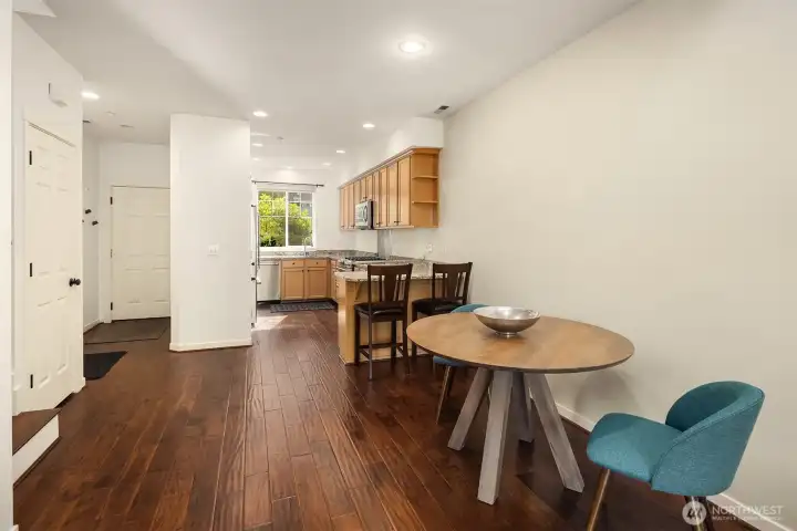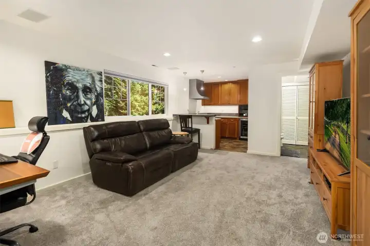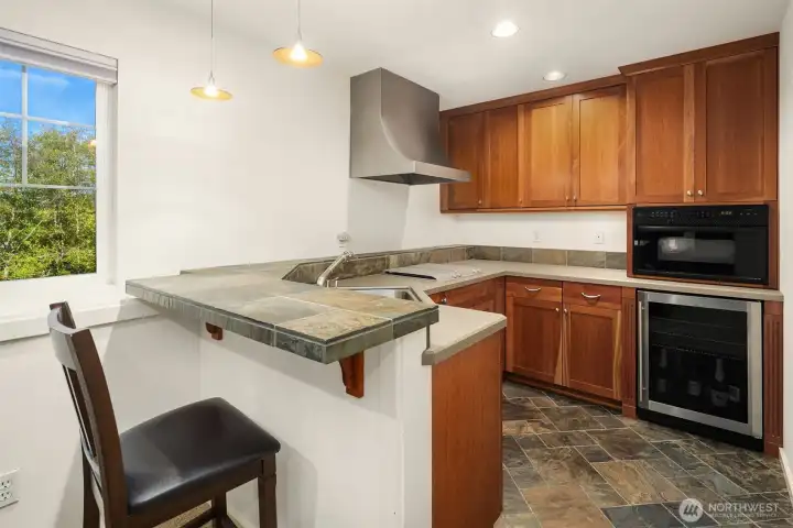 *Seller will pay for 1 year of HOD's at closing!* Exceptional end unit townhome near Woodinville's Tourist District! Enter to open kitchen w/slab granite counters, newer CAFE stainless appliances (gas cooking!)+ maple cabinetry, dining room opens to large living room w/vaulted ceilings, skylights + cozy gas fireplace, access to spacious deck w/privacy overlooking trees, main floor primary w/newly updated bath + walk in closet w/built ins, upstairs features 2 more bedrooms w/full bath, spacious lower level has 2nd kitchen featuring convection microwave, bev fridge, stovetop + ext. vent + large family room area, separate office + updated 1/2 bath, BONUS: A/C, newer garage doors, Northshore Schools, close to DT Woodinville, shopping + dining!
