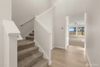 Special Financing Available! A 2/1 temporary interest rate buydown is now offered at Skyview Estates when using our preferred lender, ask for details! The Birch offers 2,432 sq. ft. of comfortable two-story living. All bedrooms are located upstairs, including one that is oversized to serve as a bonus, guest suite, or office. The main level showcases an open kitchen w/quartz counters, walk-in pantry, Charcoal Maple cabinetry & gas range. Engineered hardwood enhances the entry, kitchen, and dining, while quartz surfaces and quality details are carried throughout. A covered patio, fully landscaped yard, and privacy fencing create a welcoming outdoor space. Sought-after Tumwater location near schools, major shopping, and quick freeway access.
