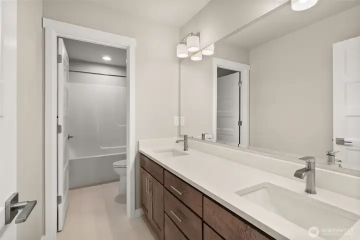 The Sagewood delivers space, style & smart design in Trosper Woods—a 28 home Rob Rice community in Tumwater. With 5 bedrooms + bonus, this versatile layout includes a main-floor junior suite w/3/4 bath ideal for guests or work-from-home flexibility. At the heart of the home, a stunning kitchen features Shadow Maple cabinetry, quartz counters, full tile splash and upgraded KitchenAid appliances. The generous primary suite offers a spa-like retreat with vessel tub, full tile shower & walk-in closet. Solar panels, heat pump, triple-pane windows & recirculating hot water add lasting comfort. Enjoy a 3-car garage, covered patio, full landscaping with sprinklers & privacy fencing. Located close to I-5, parks, schools and Costco just minutes away!
