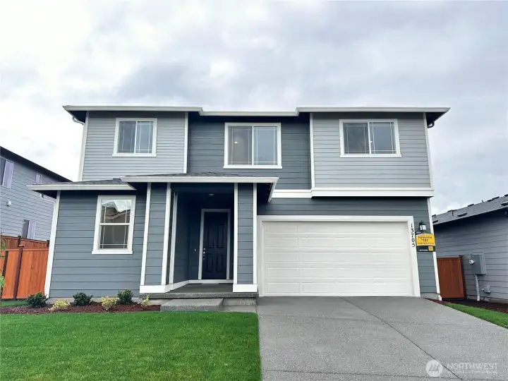 Move In Ready! This brand-new home is thoughtfully designed for the way you live—whether that means hosting friends or simply unwinding at the end of the day. The main level welcomes you with soaring 9-foot ceilings and a bright, open-concept kitchen and great room that flow seamlessly to the backyard, with an extended covered patio. Upstairs, relax in the spacious loft or retreat to your oversized primary suite complete with a luxurious en-suite bath. Other features include a fully fenced and landscaped yard, quartz countertops throughout, garage door openers, and year-round comfort with a heat pump and air conditioning.