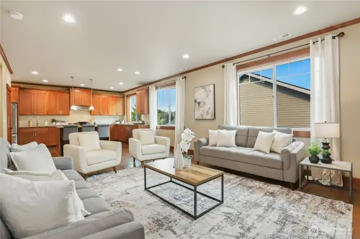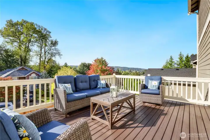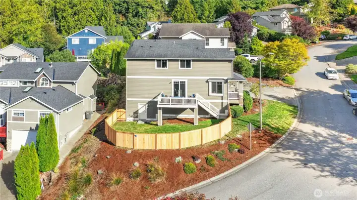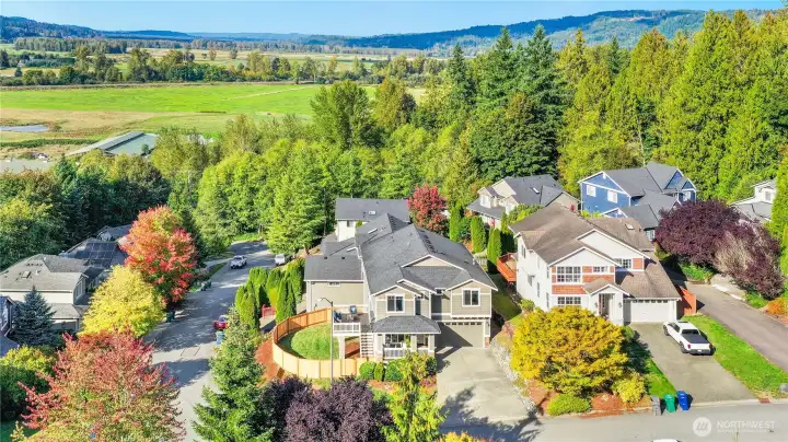 Perched on a sunlit corner lot w/ sweeping valley views, this well-maintained Duvall home blends modern comfort & natural beauty. The open great rm welcomes you w/ bright windows & a cozy fp, flowing into a gourmet kitchen w/ oversized island, ideal for cooking & entertaining. Step onto the deck & enjoy the new fenced yard, perfect for gatherings or quiet sunsets. Upstairs, the tranquil primary suite offers a spa-inspired retreat, while the theater & game rm w/ projector, bar & wine fridge provide space for memorable nights. W/ flex areas for guests or office, plus A/C, EV charging & trail access, this home captures small-town charm near shops, dining & the Microsoft shuttle.