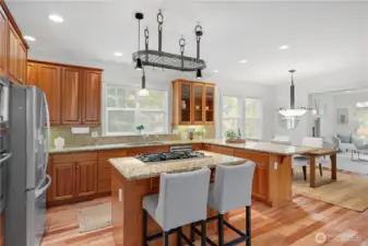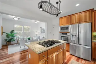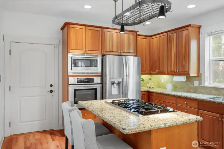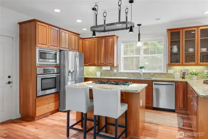Like new, 3 Bed,2.5 bath home in a fantastic in town neighborhood, close to everything. Spacious Primary Bath w/jetted tub. Large slab granite counters in kitchen w/island gas cook-top. Wood wrapped windows, Beautiful refinished hardwood floors throughout the living spaces, tile in baths and laundry, SS Appliances. 2 propane fireplaces, 1 in Prmary Bedroom and 1 in Living Room. Large laundry upstairs. Stone and Wood exterior. Professionally developed landscaping/spinkler, decks/cover and arbors.