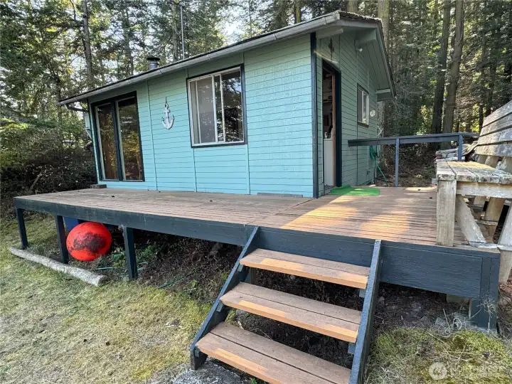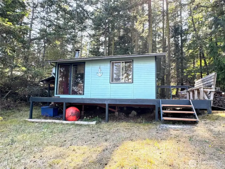 PRICE REDUCED! Seller's hardship is your gain! Seller Financing available with strong down payment. Enjoy year-round adventures with fishing, crabbing, and water play from your 100' of private waterfront on beautiful Center Island. Long-term rentals allowed. Main floor features an open kitchen, dining, and family room w/ specialty wood stove, 2 bedrooms, and ¾ bath. Upstairs is an unfinished space with endless potential—create a primary suite, Art studio, or bunkroom. Wraparound deck plus separate guest quarters with loft, kitchen, and half bath. INCLUDED: 24' SeaRay offshore boat w/ twin 150hp Yamahas (280 hrs), private 40’ float, Livingston dinghy, crab/shrimp pots, fishing gear, and golf cart. Just steps from the dock for easy access.