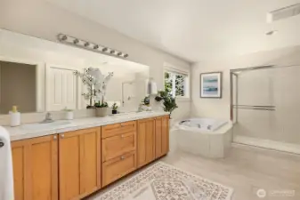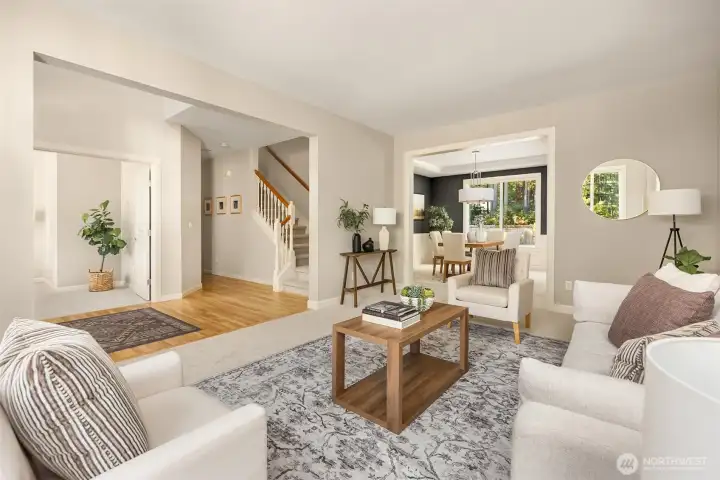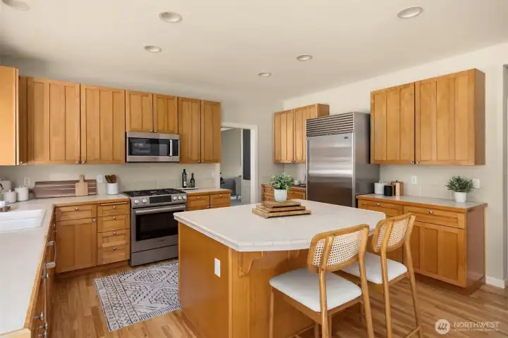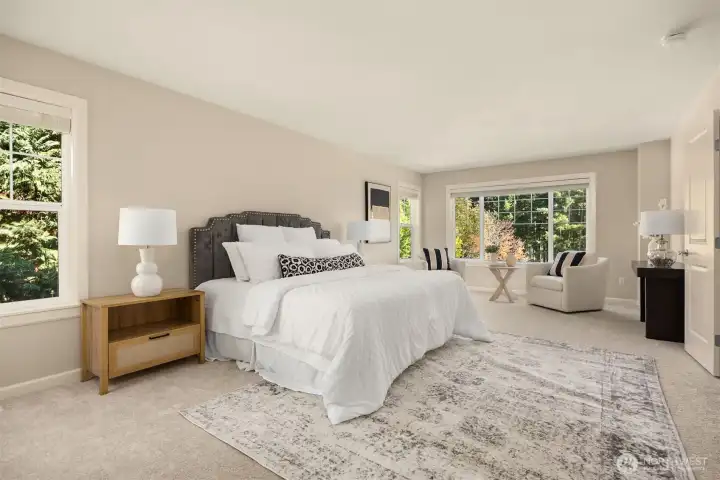 Welcome to your serene retreat nestled in the heart of Woods and Meadows! This expansive, light-filled home offers the perfect blend of space, comfort, and tranquility, surrounded by lush greenery and quiet walking trails. Step inside to discover a versatile layout with generous living areas, a chefs kitchen ideal for gatherings, and large windows that frame soothing views of nature. The primary suite offers restful privacy, while additional three bedrooms provide flexibility for guests. Two dedicated home offices! Enjoy relaxing evenings on the sunlit deck, entertain in the dining room, or explore and play in the large landscaped backyard. Topping it all off is a three car garage. Convenient access to shops, parks, and schools.