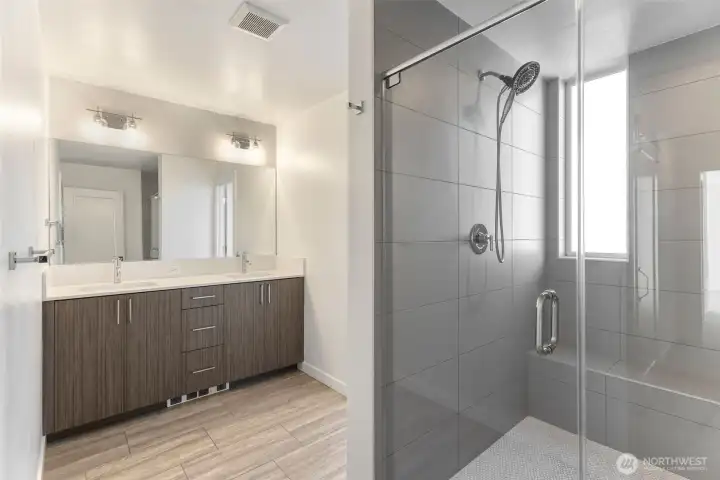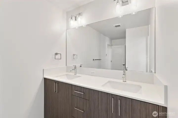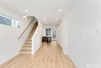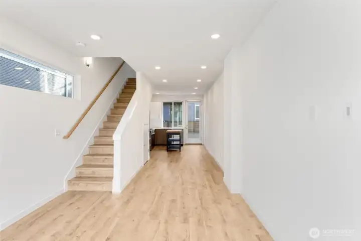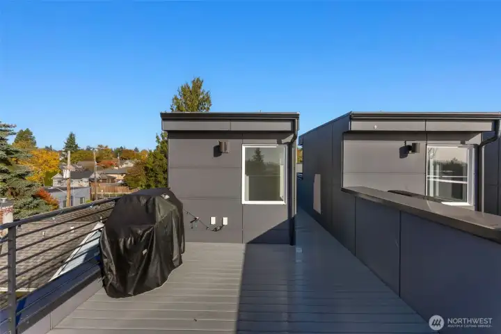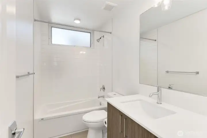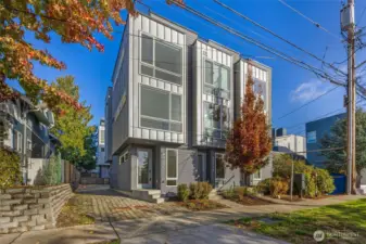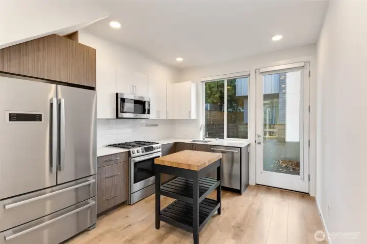 Welcome to your new home with 3 bd & 1.75 bath w/off street parking. The front entry way opens up to the LR & transitions to a beautiful kitchen w/quartz countertops, European style cabinets, Bosch 55 appliances, wide plank flooring throughout. 2nd floor features two bedrooms w/laundry rm. 3rd floor has master suite and walk-in closet, spa like bathroom w/shower bench. Rooftop deck has a nice, south facing view - perfect for BBQ & entertaining. Clean landscaping & close proximity to bus lines.