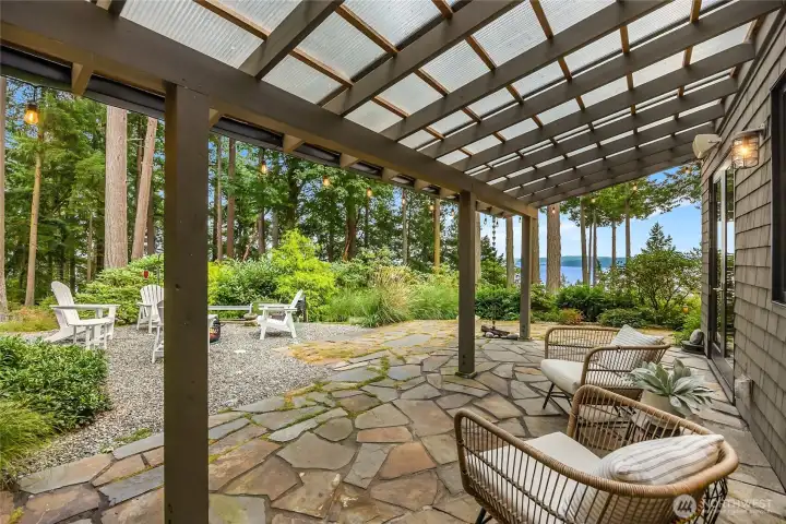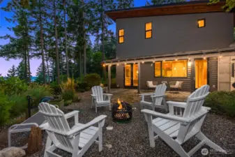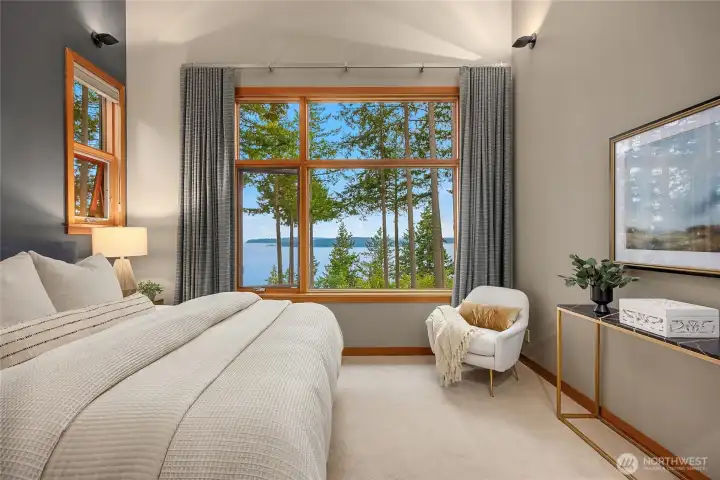 The drama, beauty and magnetism of the Puget Sound and Mt Rainier are on full display from every thoughtfully designed living space of this NW contemporary home. Enter to a stunning two-story living room with soaring floor-to-ceiling windows that blur the line between elegant interiors and lush nature. Chef's kitchen and dining room open to a covered patio for year-round indoor/outdoor dining/entertaining. Two main floor water view bedrooms include the primary suite with a 5-piece luxe bath. The lower level 3rd bedroom is currently a sitting room and study. A separate 712 sf studio guest suite includes a 3/4 bath and living room. In-floor radiant heat, a luxurious hot tub and oversized garage complete the home. Welcome to your island haven!