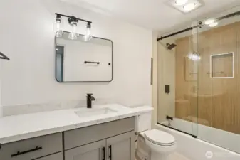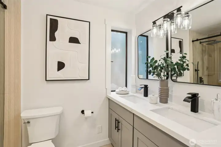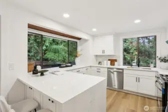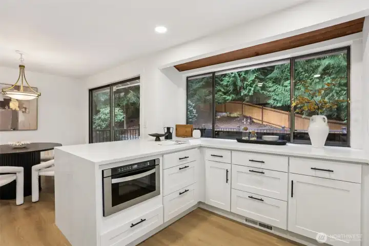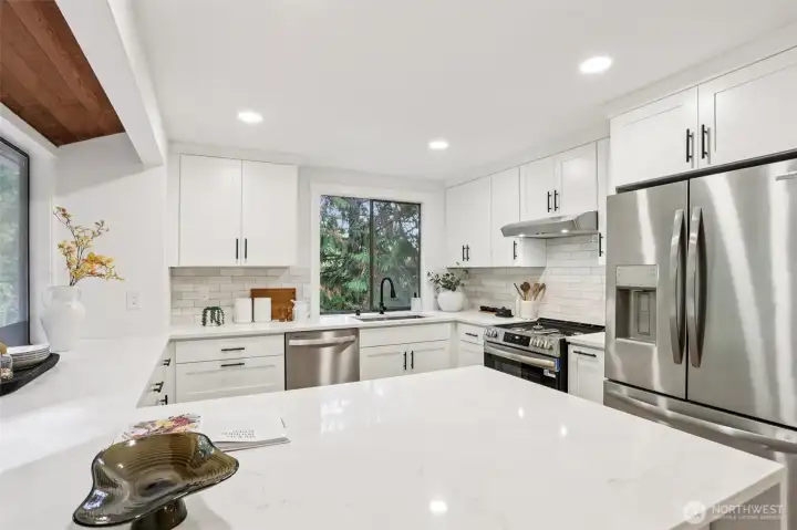 Discover this charming split-level home in great somerset neighborhood, blending comfort and convenience. This completely remodeled home flawlessly blends mid-century charm with stylish modern finishes. Features vaulted ceiling, an open-concept layout, and the beautiful green scenery from the backyard. The stylish kitchen, designed with today’s favorite tones and trends, finishes with a waterfall quartz countertop, all high-ends new appliances, new cabinets. Other updates includes new bathrooms, new SPC floor throughout, all new solid doors—nothing has been overlooked. A new, efficient AC system adds comfort during hot summers. New landscaping, In top-rated Bellevue schools, near parks, and I-405 & I90 for easy commutes. Don't miss out!