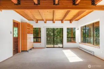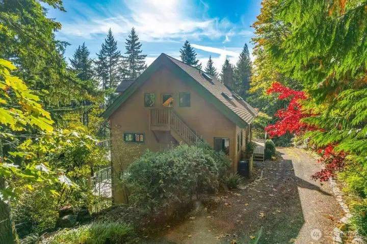A one-of-a-kind custom "tree house" home situated on bright, open and manicured, terraced acreage. Surrounding views of trees, birds and sunlight. Large decks encircle high windows allowing light and privacy. Interior wood offers a warm and cozy cabin feel next to the fireplace with vaulted ceilings and a huge loft with three quarter bath. Master suite is on main with french doors and room to spread out. Lower daylight level has another large bedroom with full bath and utility area off family room. Outside access to large shop and storage area leading to terraced gardens, below covered decks. Plenty to love in your own treehouse setting with a covered parking area and wood storage. Close to Issaquah & I-90 & far enough for the quiet