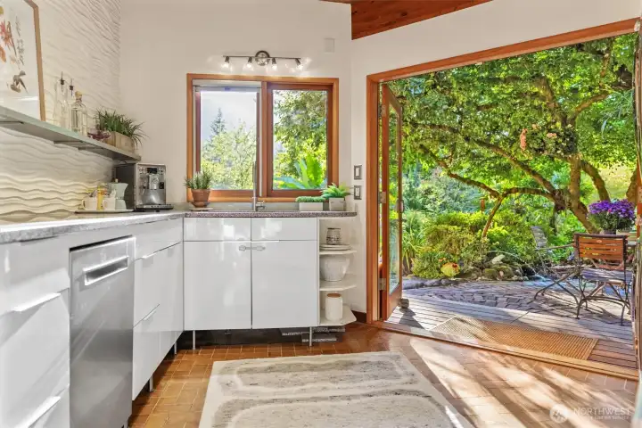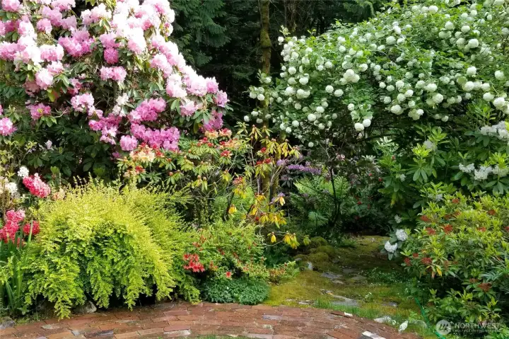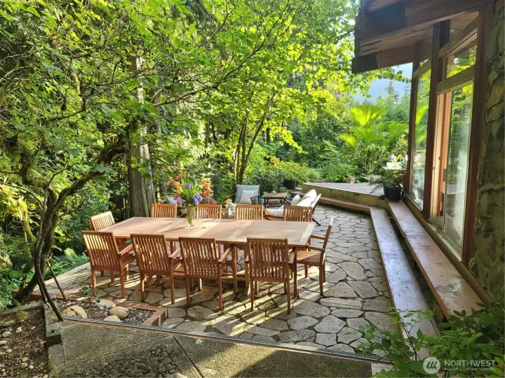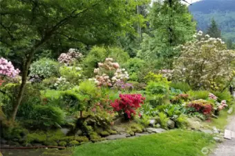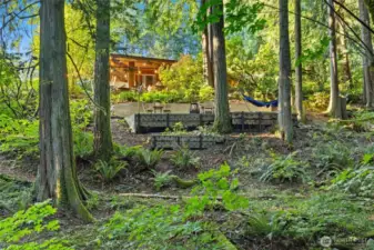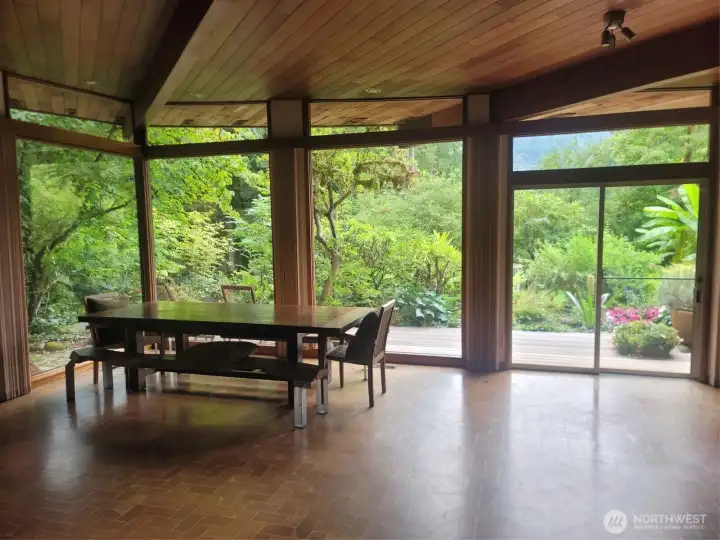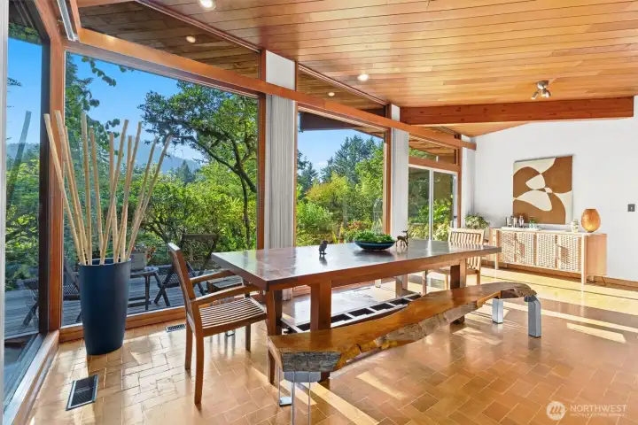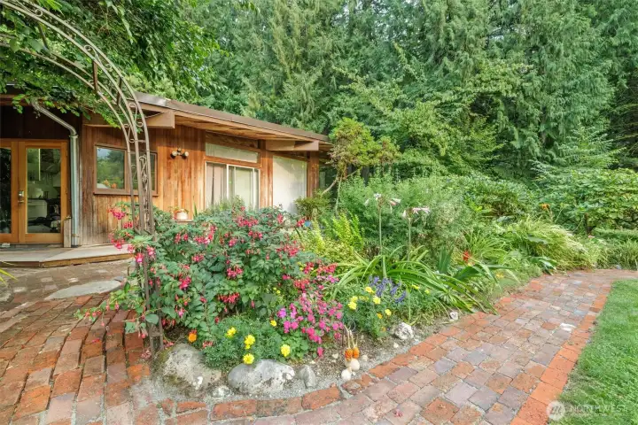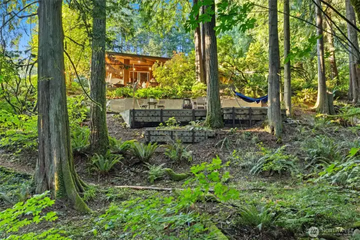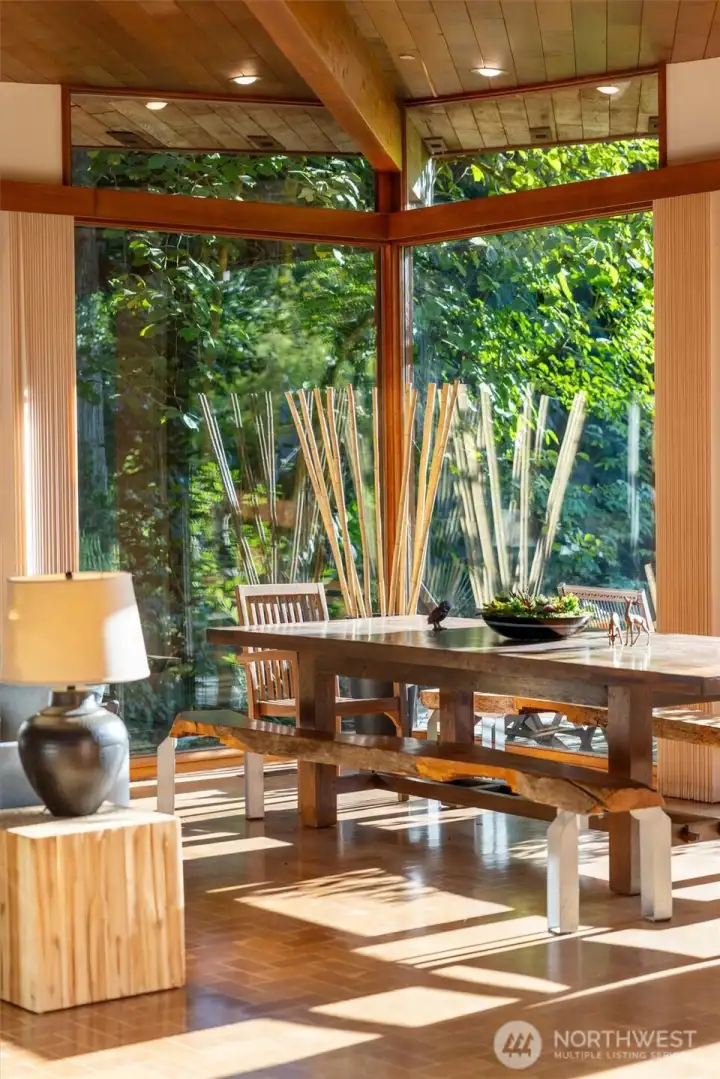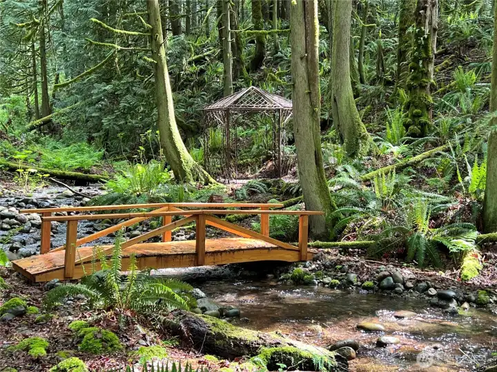 This masterpiece of architecture, mature forest and gardens are a restful sanctuary on 4.88 acres, less than 2 miles to Old Town Issaquah and I-90. A Frank Lloyd Wright style house hand crafted of heartwood cedar and walls of glass, opening to stone terraces & mahogany decks with views of Squak Mtn and Kees Creek. Unique angles create a sense of space and light. 65-year-old plant collections grace garden rooms which have hosted garden tours, weddings, and film shoots. A stable, gravel run and grass pasture connect to private horse trail entry to the Tiger Mtn trail system. The greenhouse/chicken coop, covered storage, tool shed, and a buildable corner of the lot await your ambitions! The surrounding land is in permanent conservation.