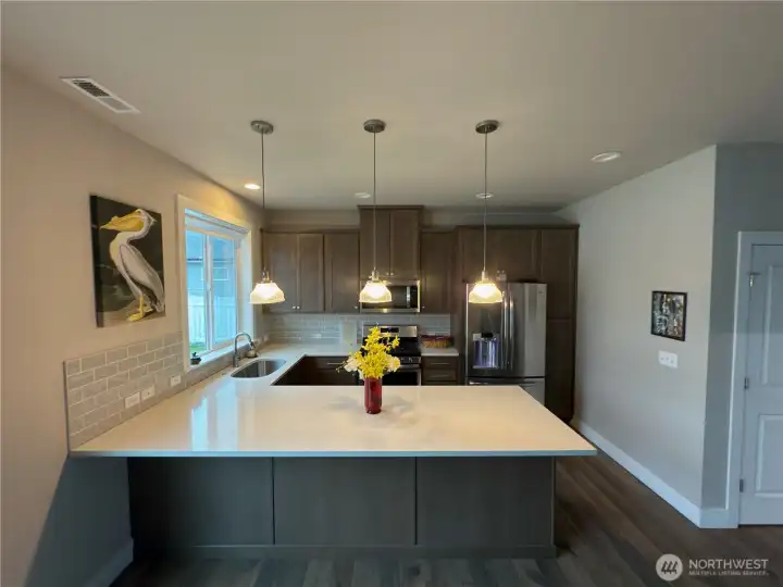 Stunning 2 bed, 1.75 bath, with an office/den in the desirable 55+ community of Majestic View Estates. Enjoy the open-concept layout between kitchen, dining, & living rm, perfect for entertaining. Double door entry leads to the office/den area off entry. Kitchen features quartz counters w/large bar & plenty of seating. SS appliances, gas cook-top, high-end cabinets, & tile bask splash. Beautiful LVP flooring throughout living space. Relax in your large primary bedroom w/ensuite bath & walk-in closet or cozy up to the gas fireplace in the living area. Upgrades include tankless water heater, sprinkler system, & secure wall safe. Enjoy the clubhouse w/pool, exercise room, and Low HOA dues. All near downtown Orting w/trails & amenities.