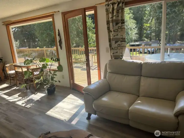 A rare find, 3.5 acres wooded park-like property located only 8 minutes from Port Townsend city center. 4 bedroom, 2 1/2 bath. Fully remodeled with new granite kitchen counters, stainless appliances, water resistant plank flooring and natural fur doors. Bright south facing living room with full length deck. Finished daylight basement with a bed, bath and game room. Fire place upstairs and in basement. Large 2 car garage with workshop. Also extra building with carport and attached workshop. Large pole barn with attached covered parking for boat or camper. Just outside city limits but connected to city water. Good location for possible small business. Owner financing option