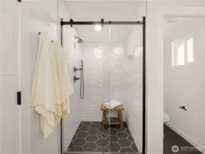 Stunning 1920 Farmhouse Craftsman Revival located in desirable Seward Park Neighborhood. Classic charm of tall ceilings & exposed beams galore. This is your opportunity to own a unique period home that has been completely revitalized. Main floor presents a spacious entry with reading nook/office space, large living room with fireplace, formal dining, spacious kitchen. Pools of light cascade throughout the house showing off the warm exposed beams & engineered hardwoods. Beautiful tiled toe kicks accent your journey upstairs to the primary suite & 2 more bedrooms. While upstairs enjoy a vaulted primary suite w/ double vanity & heated floors. Downstairs a laundry bar w/ family room extra full bath & bedroom. So much to list come take a visit!