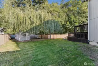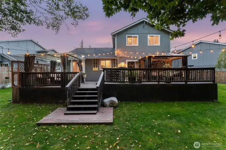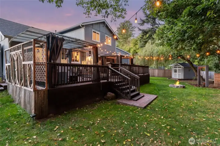Serene 3-Bedroom retreat in a Cul-de-Sac with your own park-like backyard! Relax on the back deck to the calming sound of a water feature,  while hummingbirds flutter nearby. As the evening sets in, gather around the fire pit for cozy moments under the stars. Inside, you’ll discover a bright and welcoming interior, freshly painted throughout. The open-concept living area features vaulted ceilings & a gas fireplace, creating a spacious & inviting atmosphere. The master chef kitchen awaits with modern appliances, ample counter & cabinet space,-perfect for home cooking or entertaining. Air conditioning ensures comfort in every season. Extra storage is available in the shed & under the deck.Close to JBLM, schools & freeways. Call for a showing.