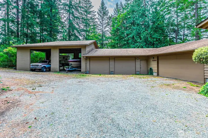 If you’ve been searching for the perfect property that combines privacy, space, and endless storage for all your toys—RV, boat, cars, motorcycles, tools—look no further! This 2,300 sq. ft. home is nestled on 2.34 acres and offers everything you’ve been waiting for. Inside, you’ll find 3 spacious bedrooms, a soaring wood-vaulted ceiling that crowns the living, the opens to the dining room, plus a bright primary ensuite retreat. The lower level expands your options with a second kitchenette, bonus room, and two additional bedrooms—perfect for multi-generational living. Step outside to an oversized wraparound deck with a hot tub and enjoy the flat, fully fenced backyard—ideal for gatherings, play, or simply soaking in your private oasis.