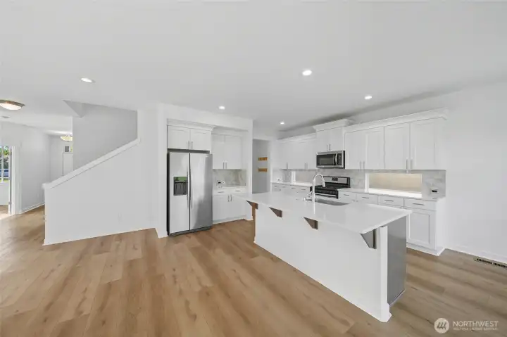 Pahlisch 2-story home on corner lot featuring fresh interior paint and new flooring throughout. The open floor plan offers a welcoming living area with gas fireplace, dedicated home office, spacious kitchen with large island with seating, stainless steel appliances, quartz countertops, pantry, and cabinets with soft close drawers. The home includes 4 bedrooms and 2.5 baths, highlighted by a spacious primary suite with a large ensuite. An oversized fourth bedroom provides excellent flex space for a bonus room, gym, or customized use. Enjoy a fenced backyard with a partially covered extended patio, ideal for entertaining. A 3-car garage offers ample parking and storage. Conveniently located near Walla Walla Community College, Bennington Lake, and Mill Creek trails. *Some Photos Virtually Staged*