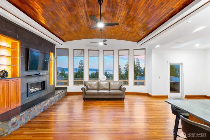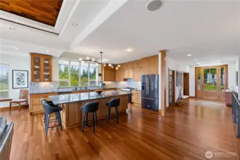 Welcome to this exquisitely updated 4-bedroom home, where high-end craftsmanship and thoughtful design shine at every turn. The main level offers effortless living with the primary suite, spacious living area, and a stunning remodeled kitchen featuring a trash compactor, microwave built into the island, and instant hot water at the sink. Sunlight pours through the home while a dedicated office provides the perfect space to work in peace. Enjoy serene views of Burrows Bay and the privacy of a small shared road with only a few neighbors. The lower level includes its own private entrance, a second kitchen, and laundry—ideal for guests. Additional features include dual laundry setups, a whole-house speaker system, and a central vacuum system.