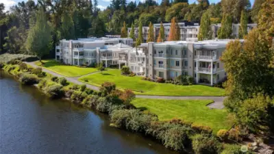 WATERFRONT living in serene, private setting. Welcome to Bothell's hidden gem! Bring your pup and walk out the door to the riverfront trail that will take you to downtown Bothell's bustling core. Parks, restaurants, shopping all nearby, but seemingly a world away when your walk through the door of this spacious 2 bed/2 bath condo. Remodeled kitchen with all newer stainless appliances, new LVP flooring, cozy gas fireplace and large primary bedroom with generous walk-in closet & en-suite bath. Private dock from which to launch your kayak & float along the Sammamish River. Across the river is the Burke-Gilman trail to walk or bike to Woodinville or Seattle. 2 parking spaces in security gated garage and private storage just outside your door.