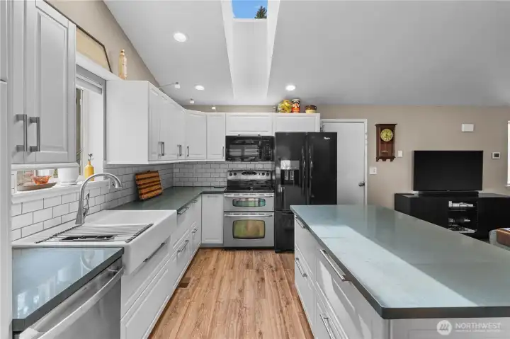 3/2 RAMBLER on NEARLY AN ACRE w/1440 sqft SHOP! This amazing property has everything you've been looking for & more! Backing to a greenbelt, BL HS is behind the house. Private & Quiet Neighborhood of Homes that rarely hit the Market due to their lot sizes & location. Updates that you need including White Kitchen Cabinets w/Quartz Counters & Subway Tile Backsplash, S/S & Black Appliances, Laminate Floors & Updated Bathrooms. Roof is approx 7 years old. Exterior Paint 6/2024. Primary Bdrm w/En Suite Bath + Walk-In Closet. Huge Back Deck, Paver Patio, Firepit, Designated Garden Space, Fruit Trees, Blueberries, Flowers, Goat/Dog Run & RV Parking & Hookup. Create your own Mini-Farm & relax knowing that you're close to whatever you need!