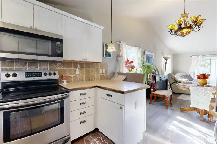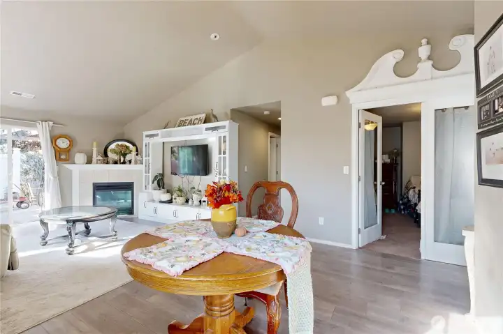 This single-level home features three bedrooms and two bathrooms, located in an established south side neighborhood. The interior includes a French door entry to the third bedroom, which also serves as an ideal den or office space. Ample natural light enhances the bright kitchen, and the open floor plan is accentuated by vaulted ceilings and new hallway flooring. A spacious laundry room adjacent to the garage offers convenient mudroom functionality. Exterior amenities include RV parking, mature trees and landscaping, a fully fenced yard, a separate garden area with raised beds, and a pergola-covered patio. This property is well-suited for both first-time buyers and those looking to downsize.