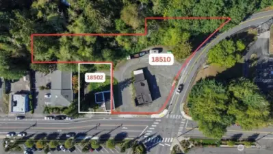 Fixer, rehab or development, value is in the land. 2 parcels for sale here for a total of 1.1 acres. Buildings include a 1572 sf office and warehouse, built in 1950, and a 1,360 sf retail shop and apartment, built in 1947. Situated at the corner of a well-travelled intersection in Perrinville and across from a busy mall, this site offers 246' of frontage along Olympic View Drive, and 159 ft along 76th Ave W.