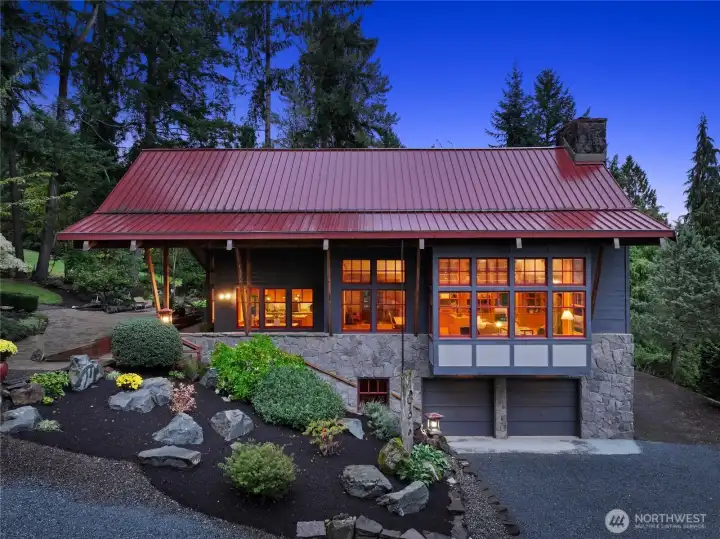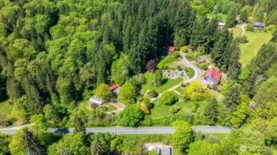 An extraordinary property in Snoqualmie Valley, immersed in natural beauty. It features two unique homes: a timber-frame house, designed with soaring 30-foot ceilings and timeless craftsmanship, and a hand-built log cabin crafted by original owners Mary, a master gardener with a talent for landscape design,& Reid, a forestry professor and woodworker The estate also includes a charming one-room cottage with its own kitchen and bath, a brew shed, a workshop, each equipped with cozy wood stoves. A sprawling outdoor kitchen, featuring a wood-fired pizza oven crafted from the creeks clay, adds a warm, communal touch. Surrounded by enchanting gardens and set against sweeping valley, it’s a haven to live artfully, dream boldly, and grow deeply.