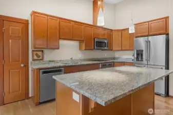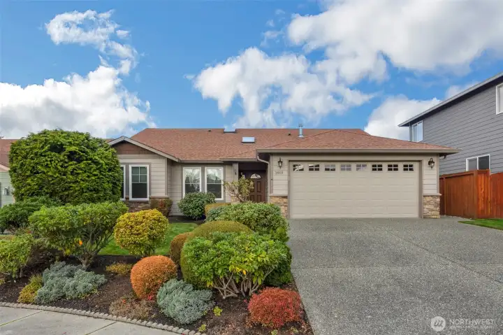 Welcome to this beautifully maintained great room rambler on a private Mill Creek cul-de-sac. Enjoy laminated hardwood floors, vaulted ceilings, a gas fireplace, & glass doors to a serene patio. The well-designed kitchen & living areas flow seamlessly, while French doors open to a versatile den ideal for a home office or retreat. The primary en suite offers a soaking tub, separate shower, & dual sinks, plus two additional bedrooms for guests or hobbies. The landscaped yard & spacious deck are perfect for relaxing or entertaining. Enjoy year-round comfort with a brand-new gas furnace, sprinkler system, air conditioning, & the efficiency of natural gas. This charming rambler has outstanding curb appeal & is the perfect place to call home.