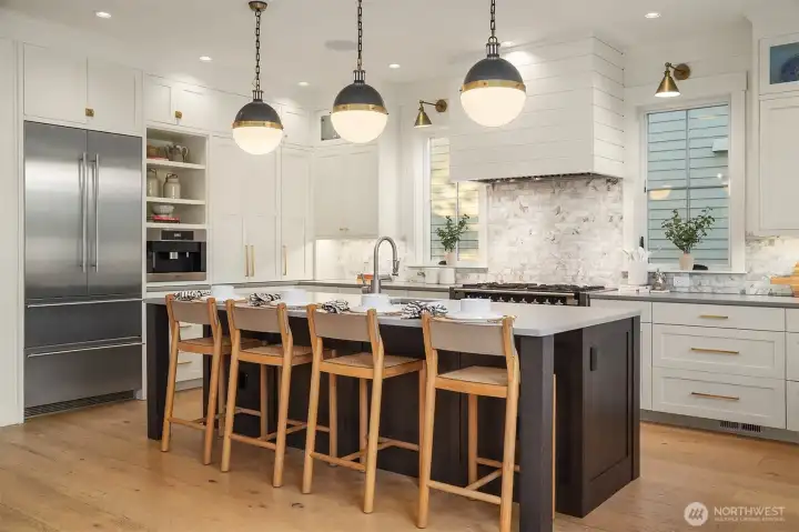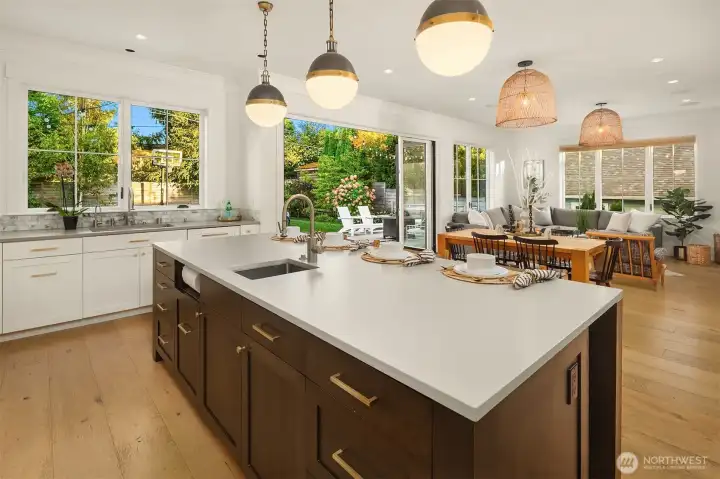 Custom home, born from an award winning interior designer’s vision, crafted to cradle everyday moments. Step into a formal living and dining room, then into a sprawling, lovingly detailed kitchen w/ premium appliances, and a second sunlit dining space flowing into a generous family room. Floor-to-ceiling la cantina doors reveal a patio w/ lush garden beds , faux turf—an invitation for intimate gatherings and starry evenings. A cozy bedroom/office, 3/4 bath, and walk-in pantry complete this floor. Upstairs, a generous primary suite w/ a dream walk-in closet and spa bath, plus three warm bedrooms and 1 full bath and a 3/4 bath. Lower level offers a 2 car garage and an extra bedroom. Close to UW, Children's, SR-520, Light Rail and U Village.