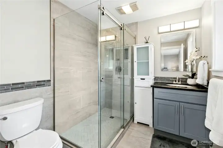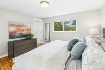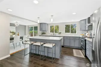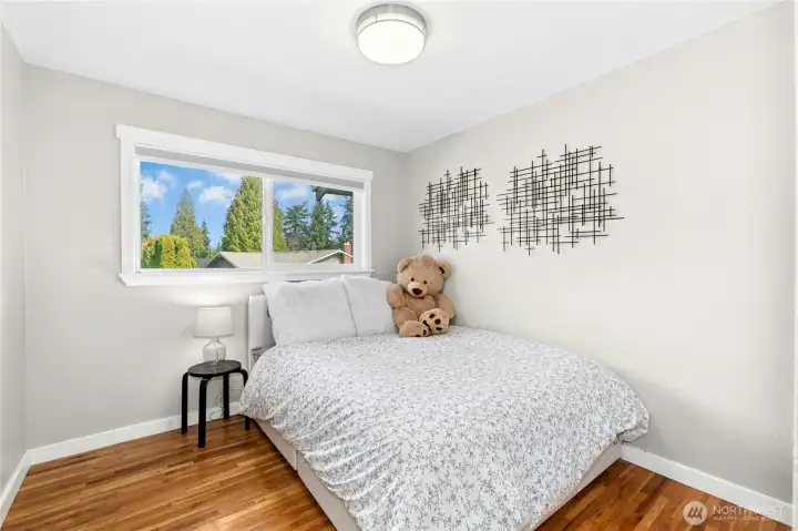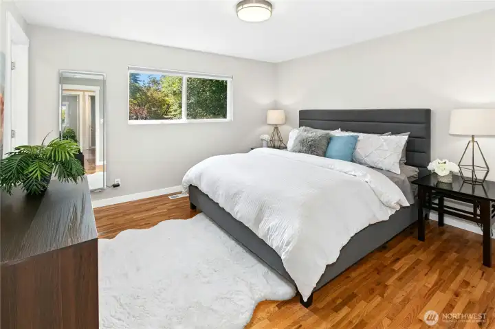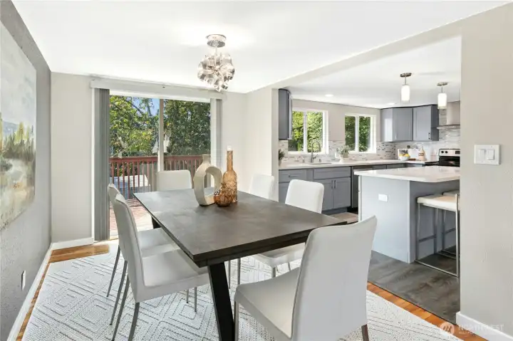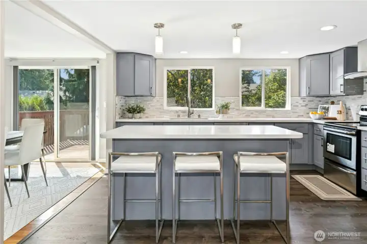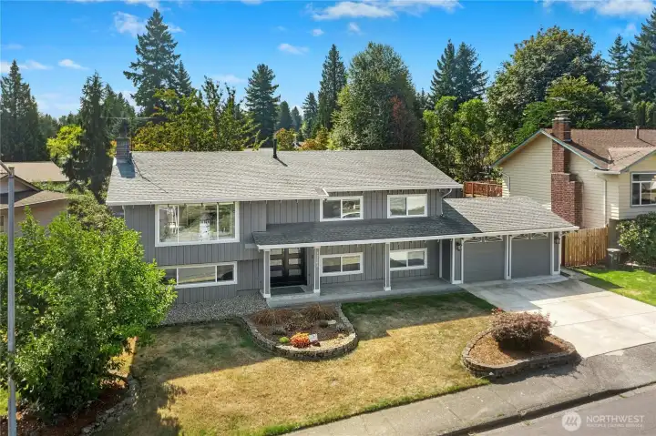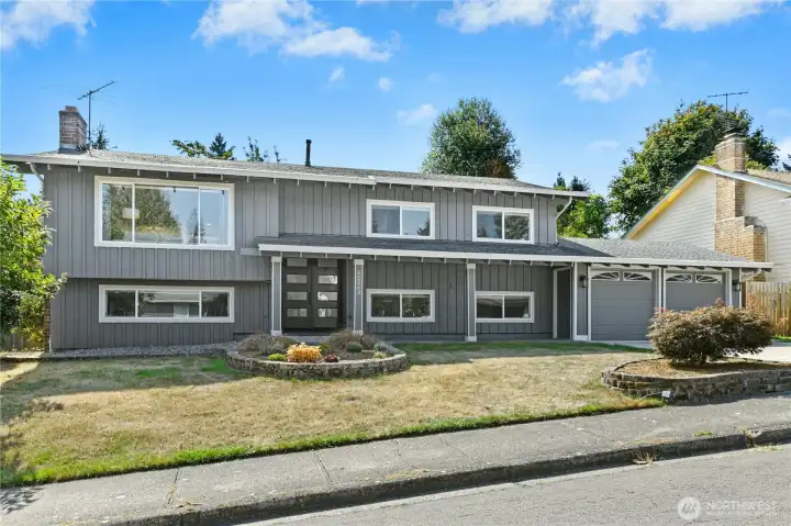 Beautifully maintained home in sought-after Newcastle cul-de-sac location! This spacious 5-bedroom, 2.75-bath home offers 2,710 sqft of living space on a level 7,841 sqft lot. Light-filled upper-level features gleaming hardwood floors, a modern open-concept kitchen with quartz counters, tile backsplash, and stainless-steel appliances. Dining area opens to an expansive deck—ideal for entertaining. Large windows, updated lighting, and cozy fireplace complete the living space. Lower level includes flexible bonus/living space, 2 bedrooms and laundry. Updated main bath and stylish kitchen. Fresh exterior appeal with contemporary paint and covered entry. Peaceful dead-end street just minutes from parks, schools, shopping, and I-405. Welcome home!