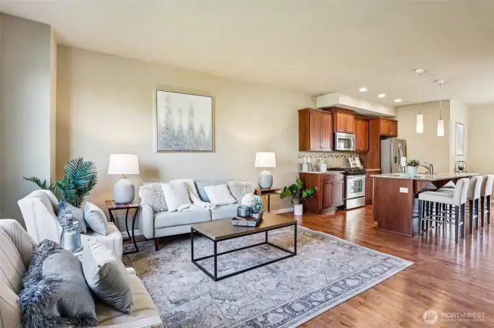 Discover the best of West Highlands Park in Issaquah Highlands, a premier community close to parks, trails, restaurants, Park & Ride, theater & so much more. This spacious townhome features large windows that provide warm natural light. The main level features a great room w/hardwood floors, gas fireplace, open concept kitchen & SS appliances. Upstairs leads you to 2 bedrooms, including the primary suite that has vaulted ceilings & a spacious ensuite bath w/duel vanities & w/in shower & walk-in closet. The top floor boasts an amazing guest suite/flex space that can be used as a bedroom, playroom or office, plus full bath. Garage is two bay. Low HOA dues. No Rental Cap. Award winning Issaquah schools, this is one home you don't want to miss.