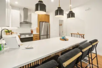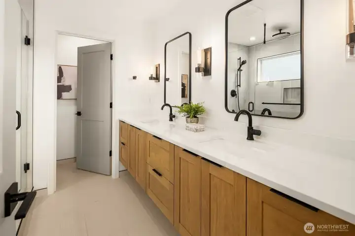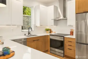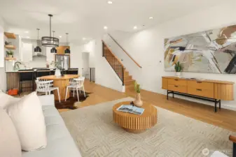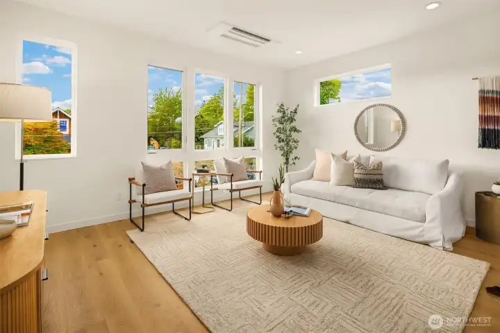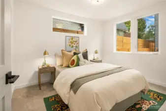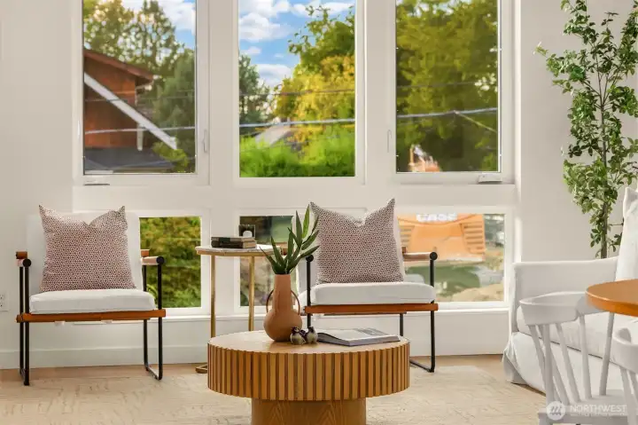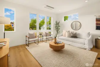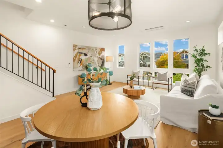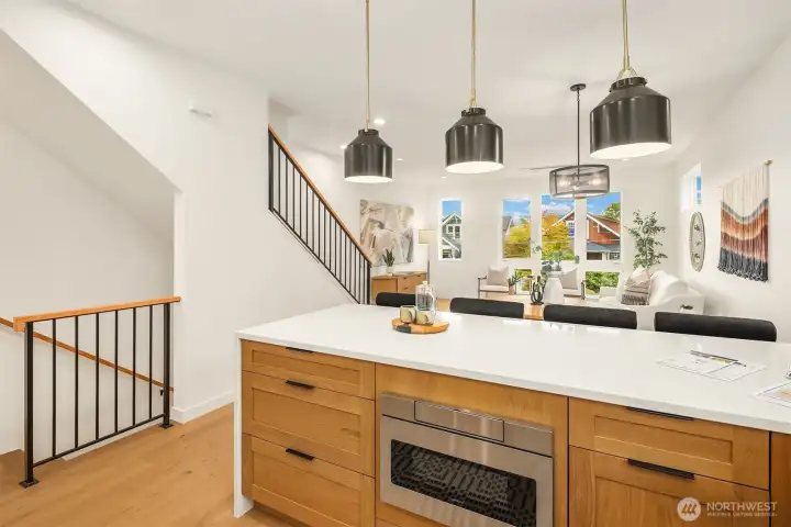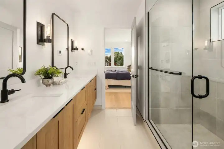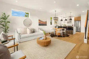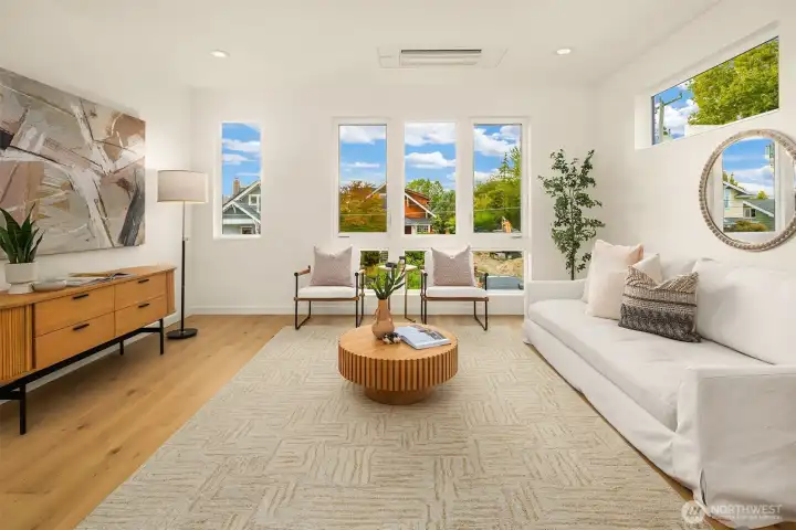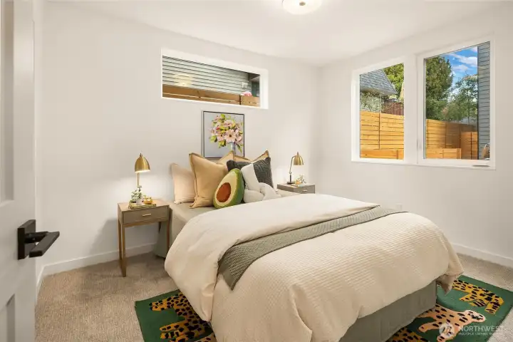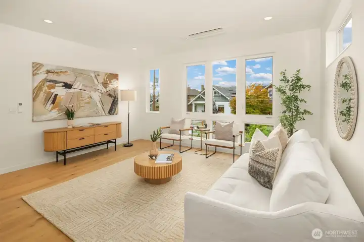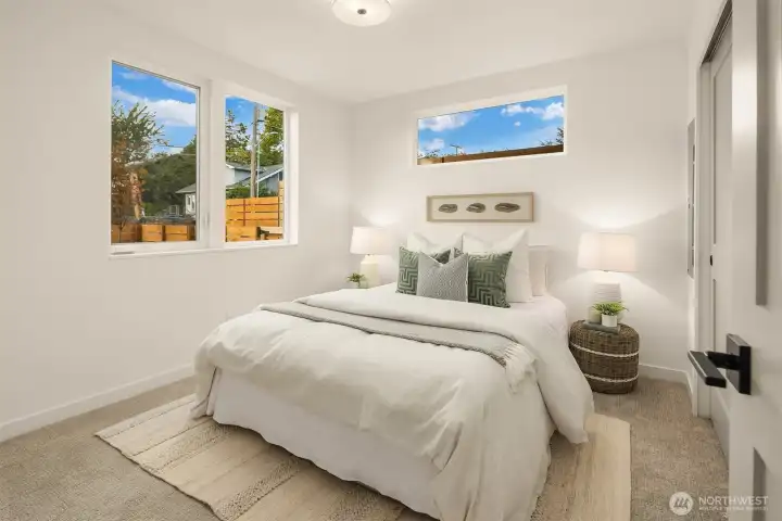 Modern design, thoughtful details, and a coveted Wallingford address—this new construction by Ecoworks Homes showcases quality on every level. A bright, open layout with floor-to-ceiling windows and warm contemporary finishes creates an inviting atmosphere. Chef’s kitchen is appointed w/ stainless appliances, custom cabinetry, and a peninsula island ideal for entertaining. Entry level offers two spacious bedrooms and a full bath, perfect for guests or a home office. Upstairs, retreat to a luxurious primary suite with spa-inspired bath and a generous laundry room. A rooftop deck with mountain and city views! Fully fenced yard with patio + designated EV parking space. All just a short walk to Gas Works Park, restaurants, and local favorites!