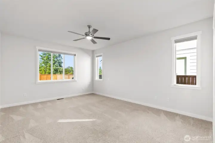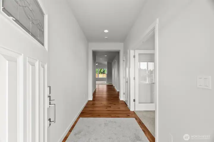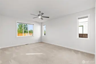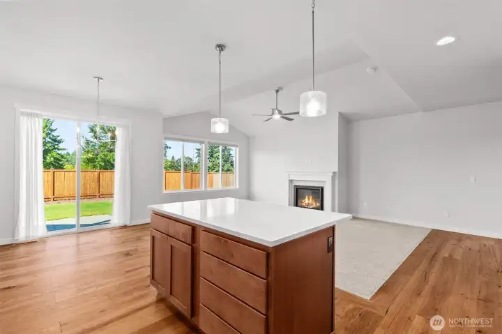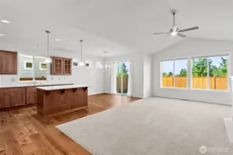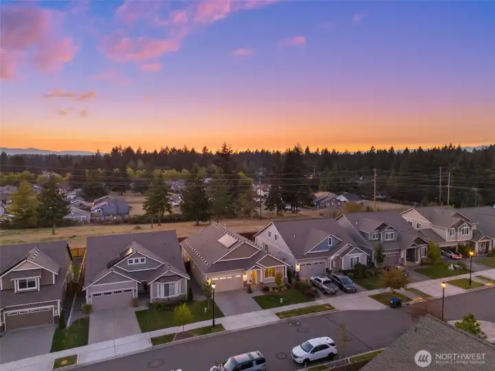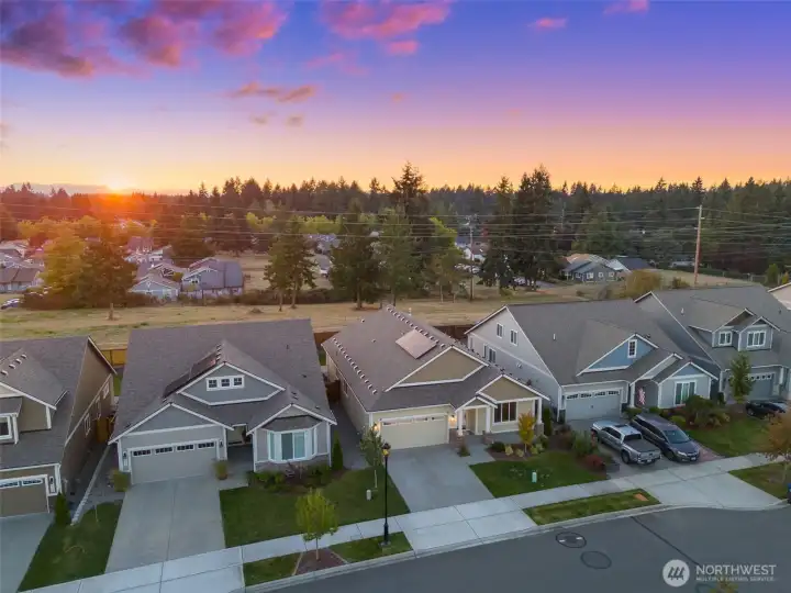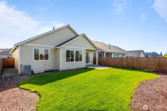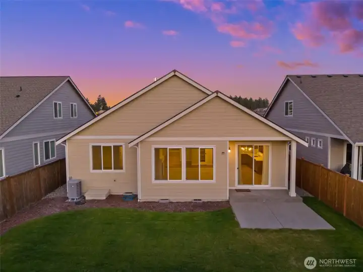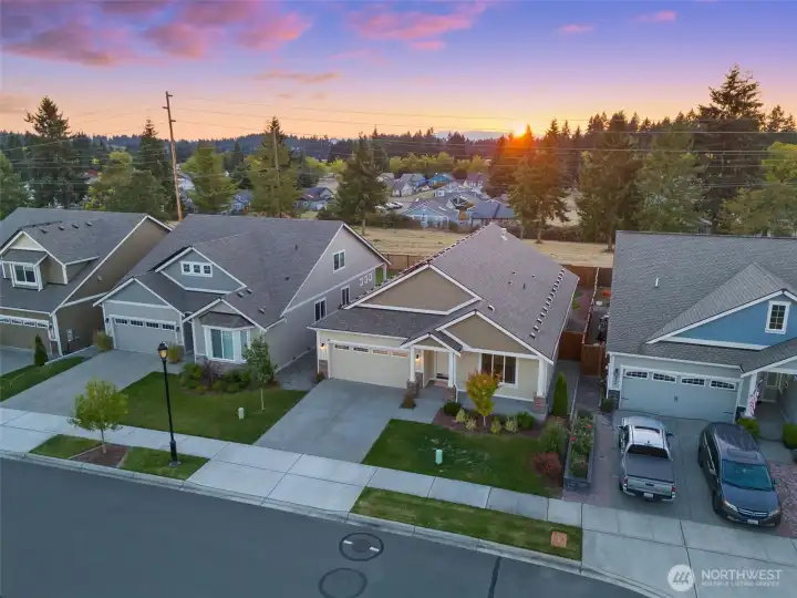 Better than new! Welcome to the Hemlock, a luxury 3 bed, 2 bath rambler completed in 2023 by Rob Rice Homes. Lightly lived in and lovingly cared for, this home is sure to please! The open-concept kitchen features quartz countertops, maple cabinets, and stainless-steel appliances, blending with the generously sized living spaces. Enjoy a large primary bedroom with a 5-piece bathroom and walk-in closet. All appliances and window treatments remain with the home. Savor beautiful sunsets from the wall of west-facing windows in the kitchen, dining and living spaces, or outside from the covered patio. The fully fenced and landscaped backyard borders an easement for added privacy. Short distance from I-5 and amenities. Schedule a tour today!