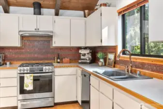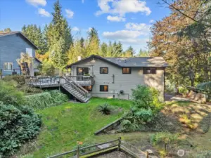 Fantastic location of this well cared for home on a generous 1/2 acre. Timeless natural & beamed Cedar ceilings. Hardwood floors. You will find a large living/dining room a cozy fireplace & a spacious kitchen along with 3 bedrooms & 2 baths with plenty of closets/storage space on the main floor. The primary bathroom has been updated w/custom cabinets & new shower enclosure. The entire home has new top of the line Milgard Vinyl windows. Downstairs you will find a full size laundry room w/deep sink, a large family room w/gas fireplace, a 1/2 bath & pre plumbed for a shower. Oversized & extra deep garage, RV Parking on the side. The property is wooded for privacy yet open for gardening & playing. The deck is south facing & oversized.