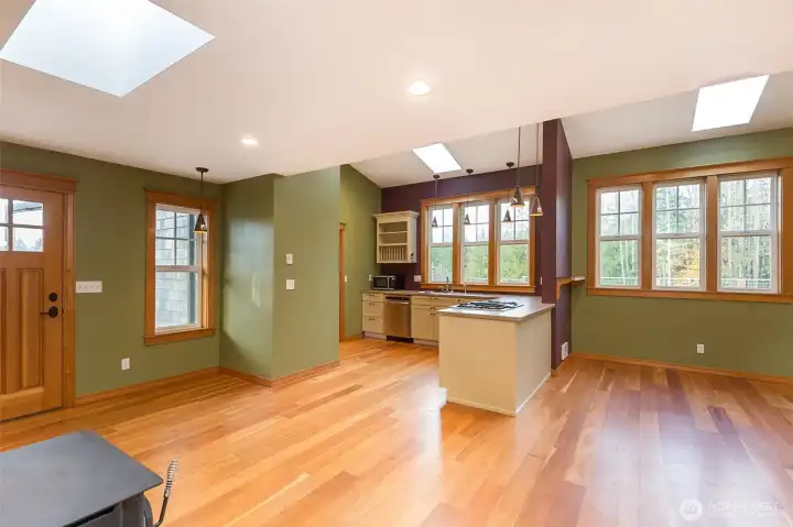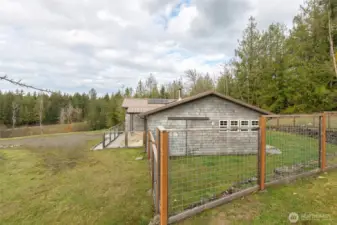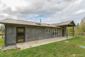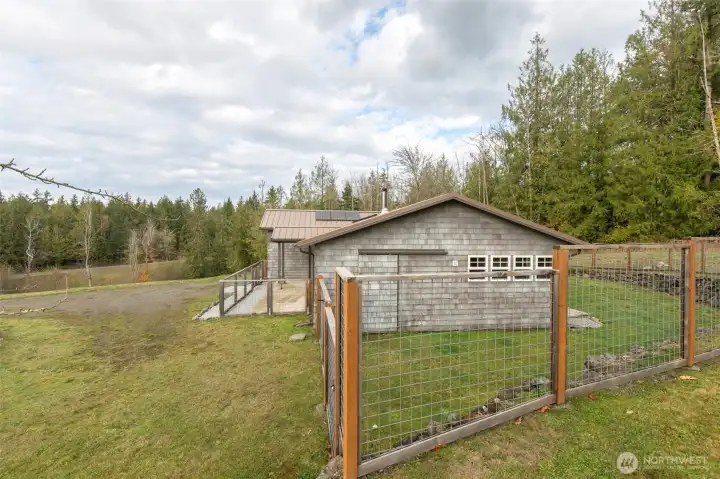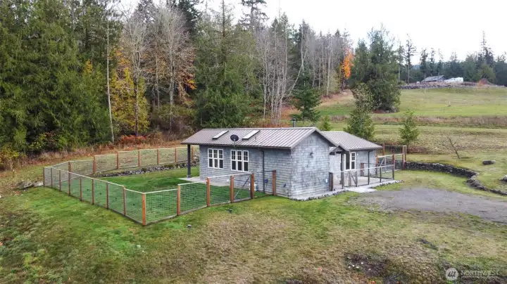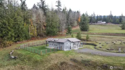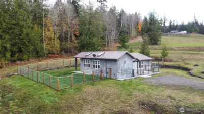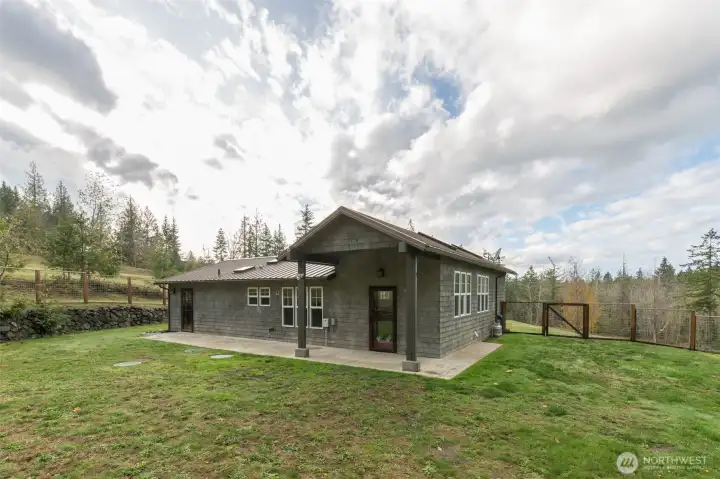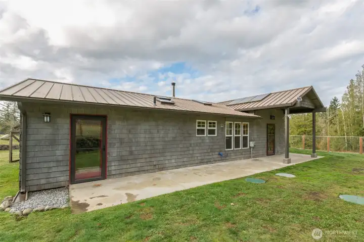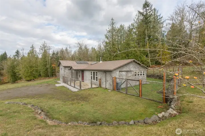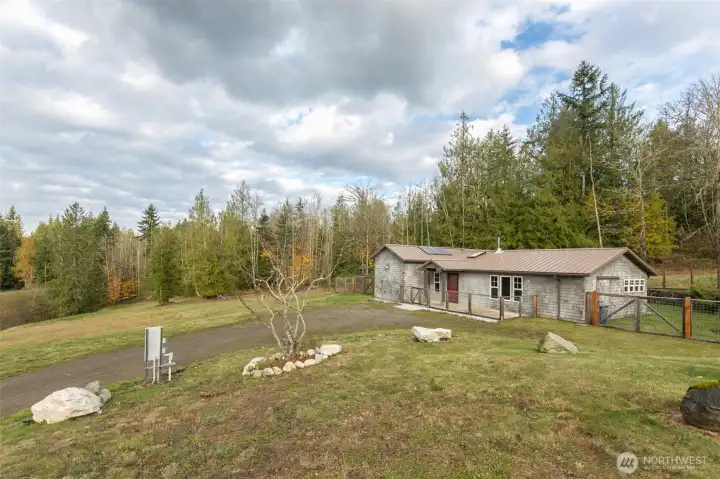 Nestled on an open 5-acre lot, this charming cedar shingled home offers the perfect blend of privacy, comfort, and sustainable living. Tucked away in a serene woodland setting, the home features a durable metal roof, solar panel system, and a fully fenced backyard—ideal for pets to roam safely. Inside, you'll find engineered wood floors, vaulted ceilings, and an open-concept living space. The kitchen is equipped with stainless steel appliances, a countertop composter, and a spacious walk-in pantry. The primary bedroom is complemented by a guest bedroom at the end of the hallway. The full bathroom conveniently doubles as a laundry area. Quiet and peaceful 5 acres. A unique opportunity to own a home in desirable in Blyn Springs Estates.