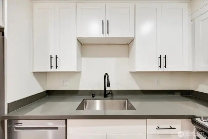 Enjoy resort-style living at the coveted Sixty-01 Condominium Complex! This BRAND-NEW ground floor Large studio end unit features, entry French doors, beautiful luxury vinyl plank floors, vaulted ceilings, flooding with natural light through large windows. Kitchen with shaker style white cabinets, quartz countertops, undermount sink, and stainless steel Whirlpool appliances. A perfect blend of comfort and convenience! Secluded lake, athletic courts, exercise room, scenic trails, 4 outdoor pools, sauna, clubhouse, private cocktail lounge, game room, and community pea patches. Just outside your door, carport parking with locked storage + extra parking. Well-funded HOA. NO RENTAL CAP. Close to MSFT, Google, Downtown Redmond and freeways.