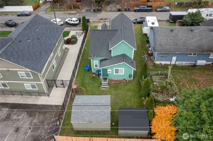 Discover this delightful and budget-friendly 3-bedroom, 2-bath home perfectly located in Central Tacoma. It offers an inviting mix of comfort, style, and opportunity. Step inside to find freshly painted interiors and exteriors, newer roof (just 3 years old), plus a smart, versatile floor plan with a main-level bedroom—perfect for guests, an office, or easy one-level living. Upstairs are two additional bedrooms and another full bath. The living spaces feature durable laminate floors and a seamless layout that feels both warm and efficient. Enjoy the bonus 12x16 shop, 12x8 shed, and surround sound stereo system with speakers included!