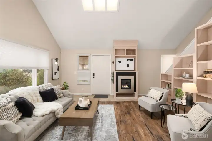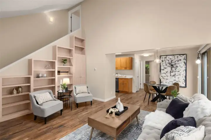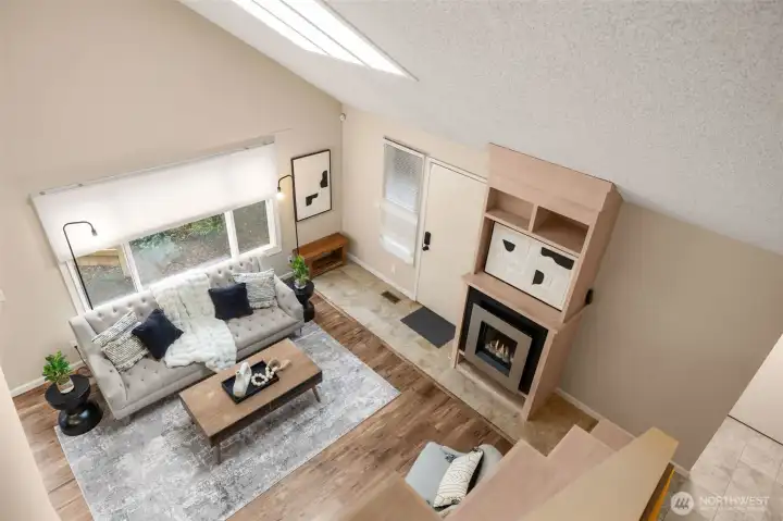 Welcome home! This updated 2 bed, 2 bath home with a garage located in 55+ Huntington Park community. Well maintained with vaulted ceilings & big windows giving a open spacious feel with great natural lighting throughout. Updates include remodeled kitchen, SS appliances, paint, lighting, floors, and more! Main floor bedroom and remodeled bathroom with heated floors and walk-in shower and a second bedroom plus bath upstairs. Gas Fireplace, Triple pane windows, W/D conveniently located on the main floor. Low monthly HOA dues which include lawn care and amenities such as: clubhouse, swimming pool, hot tub, fitness classes, social events, green belt and walking paths with trails throughout the neighborhood & a designated lot for RV parking.