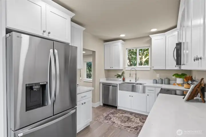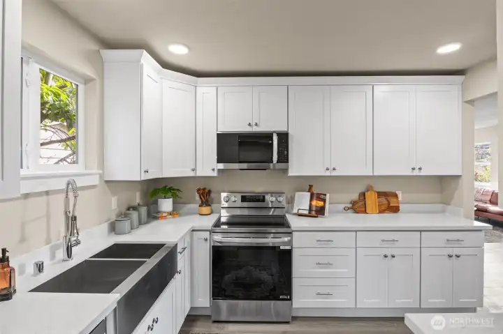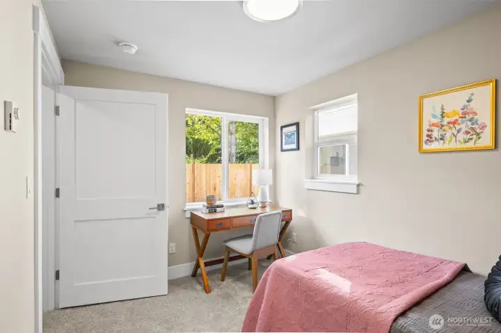 Stylish 2025 down-to-studs remodel designed for modern living. Featuring 3 bedrooms, 2+ bonus rooms, and THREE 3/4 baths, this home lives like a single-family with patio. The open layout, lots of natural light into the kitchen and living spaces, perfect for gatherings. Off-street parking with EV charging. Located in the heart of North Seattle near Wallingford, steps from groceries, parks, dining, and major bus routes, with Northgate minutes away.