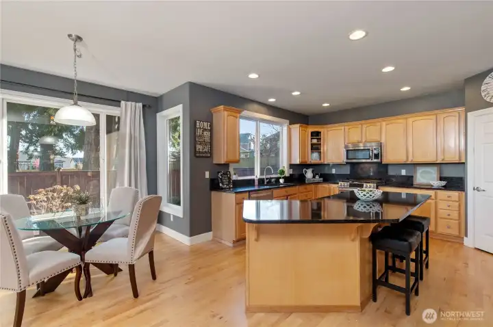 HUGE Price Improvement! Welcome to this stunning, one-owner home nestled in the prestigious gated community of Belmont. Boasting over 3,240 sq ft of thoughtfully upgraded living space, this home offers versatile multigenerational living options with 4 bedrooms plus 2 dedicated offices—one easily convertible to a 5th bedroom. Perfectly situated just 1 mile from charming downtown Puyallup, this home is in a prime location overlooking a serene 1-acre neighborhood park, with no rear neighbors for added privacy. Soaring ceilings and expansive windows fill the space with natural light, creating an inviting atmosphere throughout. The chef’s kitchen is a true centerpiece, featuring quartz countertops, a large island, stainless steel appliances, and a generous walk-in pantry. It seamlessly opens to a spacious great room complete with a cozy gas fireplace. Enjoy both formal and informal dining areas, plus a main-floor den/office for your work-from-home needs. Retreat to the luxurious primary suite, offering a sitting area or nursery space, a second gas fireplace, & a spa-inspired, remodeled bathroom. Upstairs, you’ll find four bedrooms, a massive bonus/theater room, and a convenient laundry room. Step outside to a covered patio with beautiful western exposure, perfect for entertaining or relaxing. Additional highlights include an oversized 3-car garage with a refrigerator included, and major recent updates: new roof (2023), furnace and AC (2022), and water heater (2019). Tour it today!