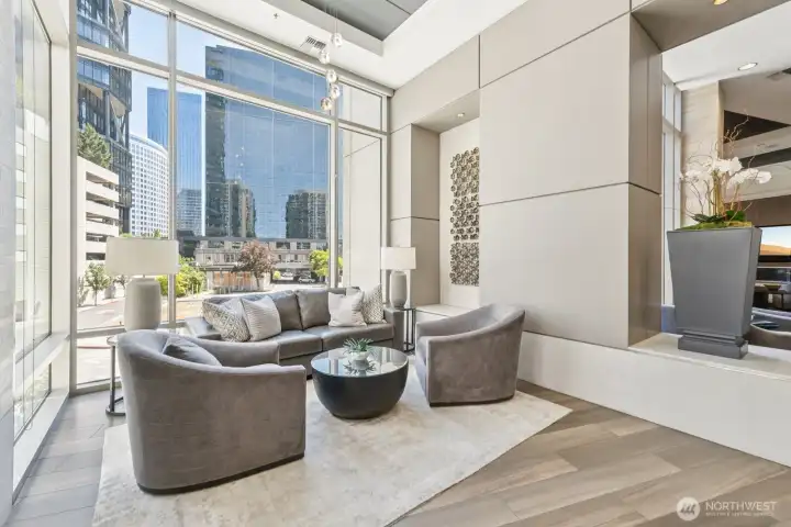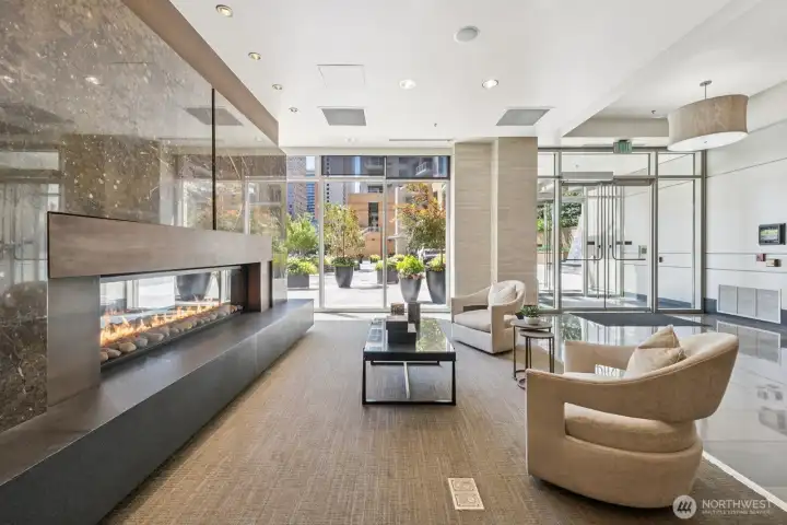 Luxury living in the heart of Downtown Bellevue at Washington Square! Spacious 1-bdrm + den lives like a 2-bdrm with flexible space for a guest room or home office. High-end finishes throughout—stainless steel appliances, granite counters, hardwoods, gas fireplace, floor-to-ceiling windows with built-in privacy shades and covered private balcony. Sound-proof construction and central AC & heating ensure year-round comfort. Full-time concierge, state-of-the-art fitness center, EV charging, hot tub, game room, club lounge, meeting rooms, and secure garage parking & storage. Dues include electricity, gas, water, and sewer. Unbeatable location, close to Bellevue Square, world-class dining, parks, Amazon, Microsoft, and future light rail station.