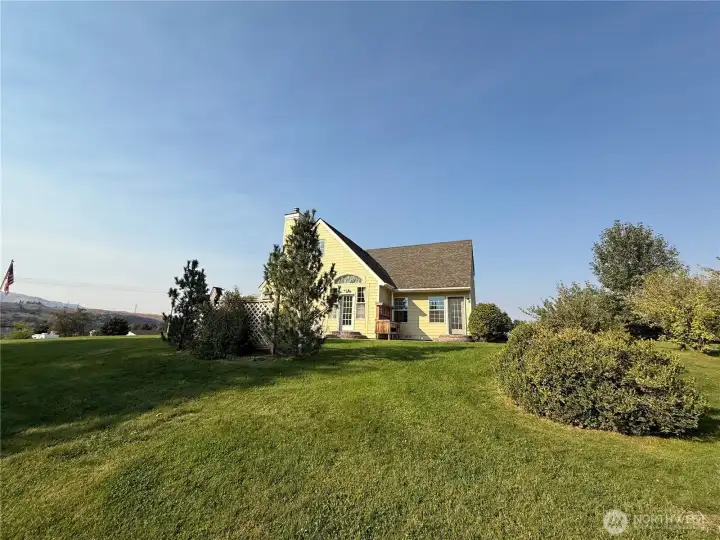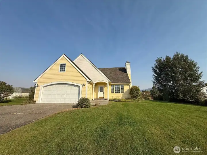 Exceptional 4-bed/2 bath home in Orchard Trails on 1.14 irrigated acres. Warm wooden beams and soaring vaulted ceilings create a welcoming atmosphere, while skylights and tall windows bathe the living room in natural light. The open floor plan flows seamlessly for entertaining—gather around the cozy wood-burning fireplace or step outside to the stone patio and private backyard. Spacious, bright kitchen with all appliances, primary suite with full bath, flexible 4th bedroom/bonus room, and separate utility. Lush lawn with irrigation sprinklers, storage shed, and double garage with paved driveway. Country feel, just minutes from Omak shopping and schools!