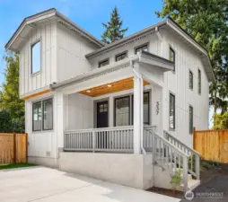 Exceptional new construction cottage by Gerry Homes in East of Market, offering refined design & elevated finishes. A charming porch welcomes you to the gracious main level featuring bright & airy two-story living room, with open concept dining and kitchen with gas range. Unique main floor bedroom and ¾ bath offers flexible floor plan. Upstairs showcases two bedrooms, each with en suite baths for ultimate privacy and convenience. Moments to downtown the shopping and dining of downtown Kirkland, recreation on Lake Washington, & effortless commute throughout the east side. Designated off-street parking provides peace of mind at the end of the day.