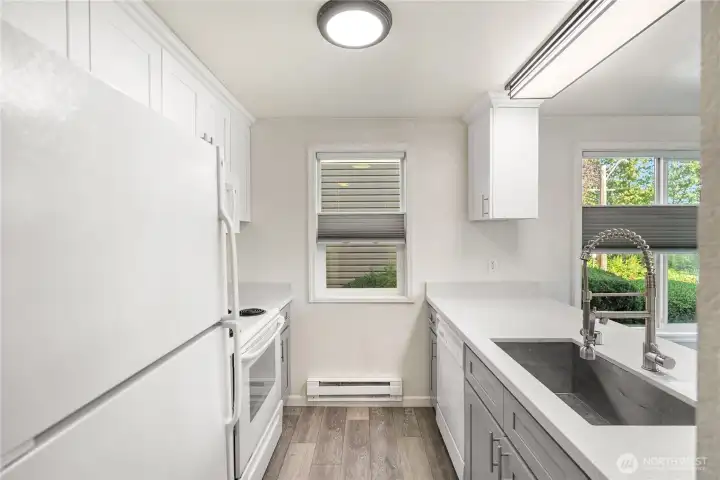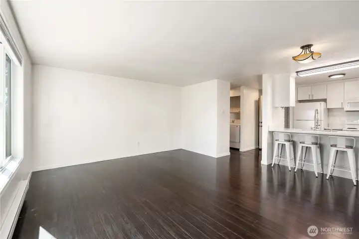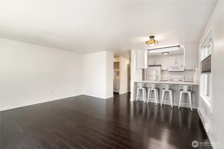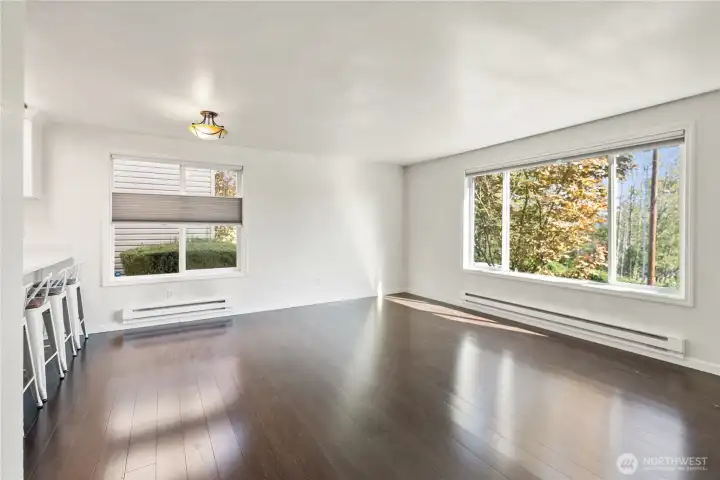 Bright and well-cared-for end-unit condo in North Everett with mountain views and beautiful sunrises. This 2-bedroom home offers an inviting eat-in kitchen, bamboo flooring, and washer/dryer hookups with appliances included. Reserved parking plus your own garage and driveway provide added convenience and storage. Enjoy the ease of nearby shopping, Everett Community College, Providence Hospital, and quick I-5 access. HOA covers water, sewer, garbage, landscaping, earthquake, and exterior insurance—low-maintenance living at its best. WELCOME HOME!