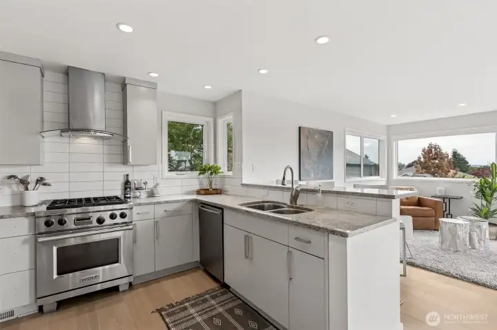 Modern and beautifully updated Contemporary in the heart of Hawthorne Hills, known for its top-rated schools, nearby parks, and convenient shopping. This home offers 4 bedrooms all on the same floor, including a spacious Primary Suite. The open-concept layout is ideal for modern living and entertaining, with stunning new hardwood floors and new carpet throughout. New roof, newer windows and thoughtful updates in every room. Step outside to a large, fully fenced backyard with mature landscaping, ideal for relaxing or hosting, and enjoy gas hook-up at the grill for easy outdoor dining. Large 2-car garage and bonus storage. Mountain & peekaboo lake views. This turnkey home blends comfort, style, & location. Close to Children's, UW & U Village.
