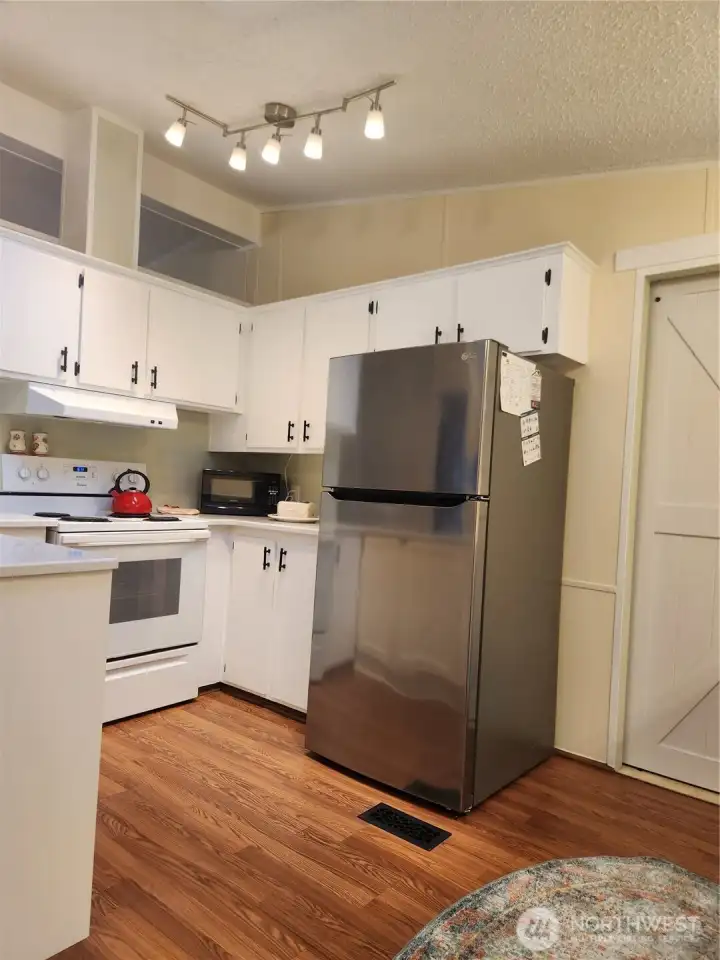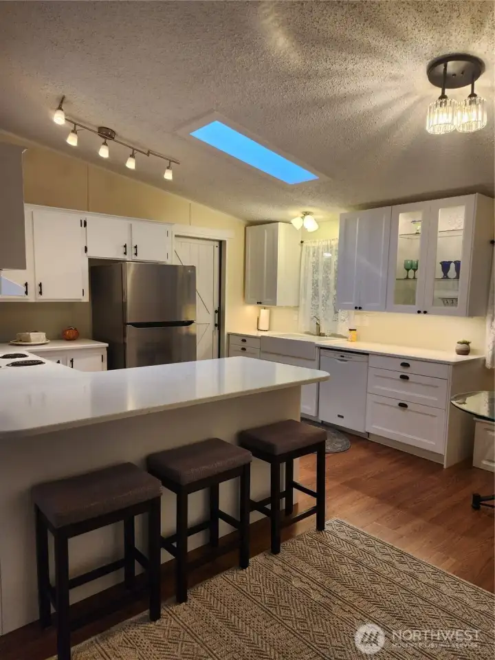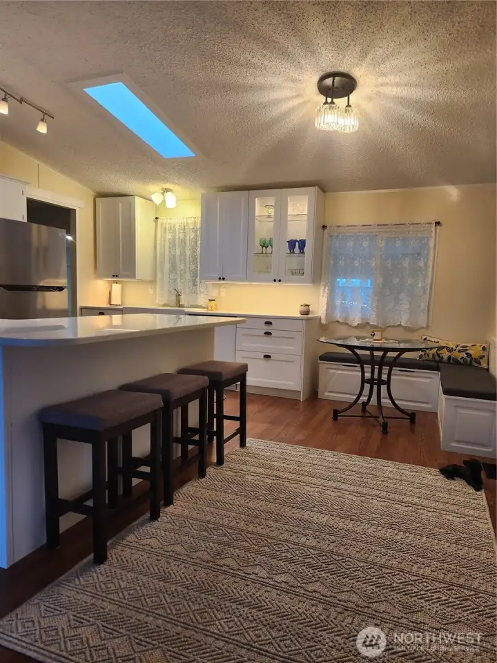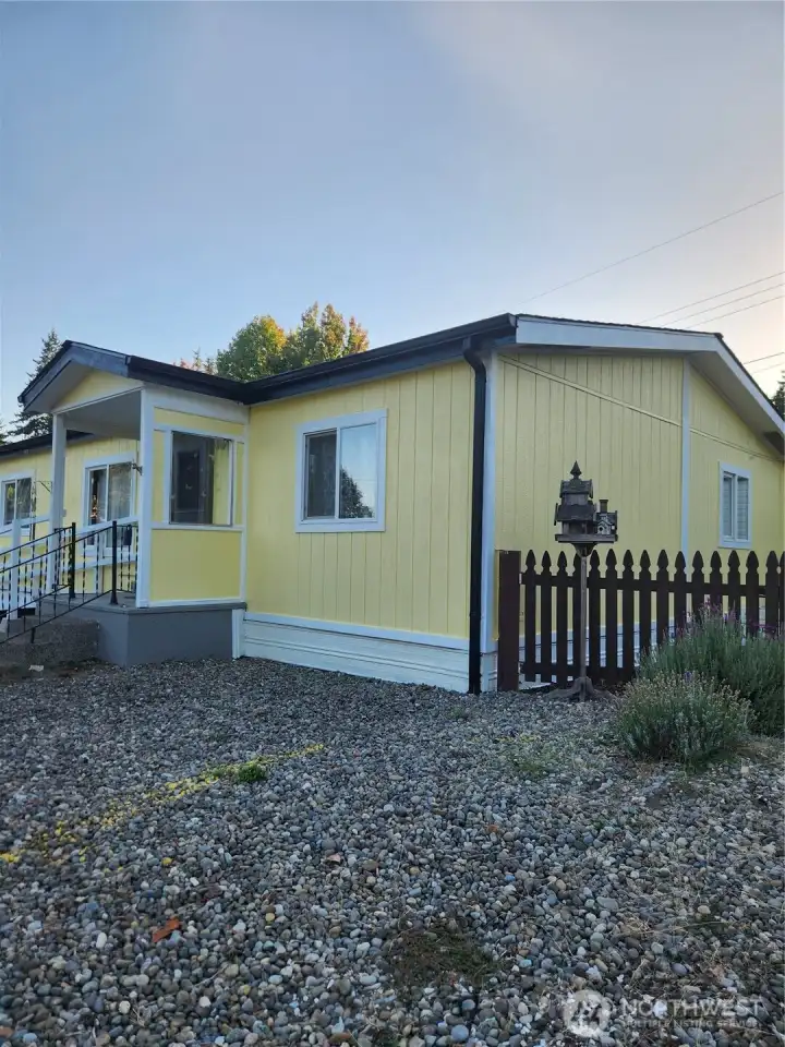 Spacious 3 bd, 2 ba home in 55+ resident owned community. New roof & upgraded kitchen, baths, electric, plumbing (incl tankless water heater), interior & exterior paint throughout. Additional 424 sf sunlit living space & bonus: full 2-car garage & 66 sf storage rm w/loft. Friendly, active community w/walking & pond. Great location for shopping and services.