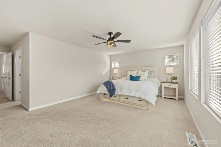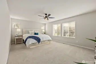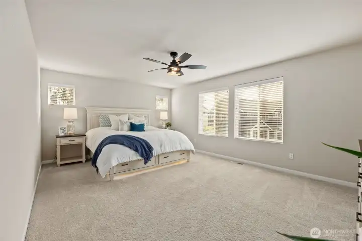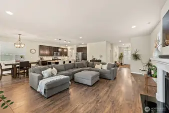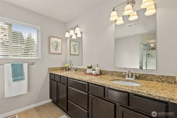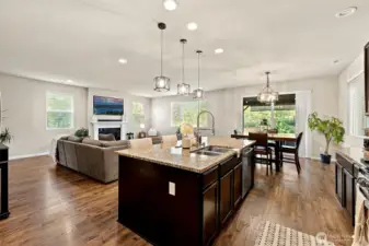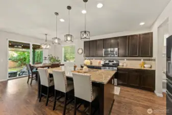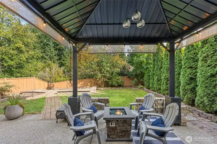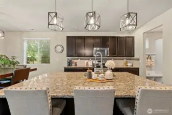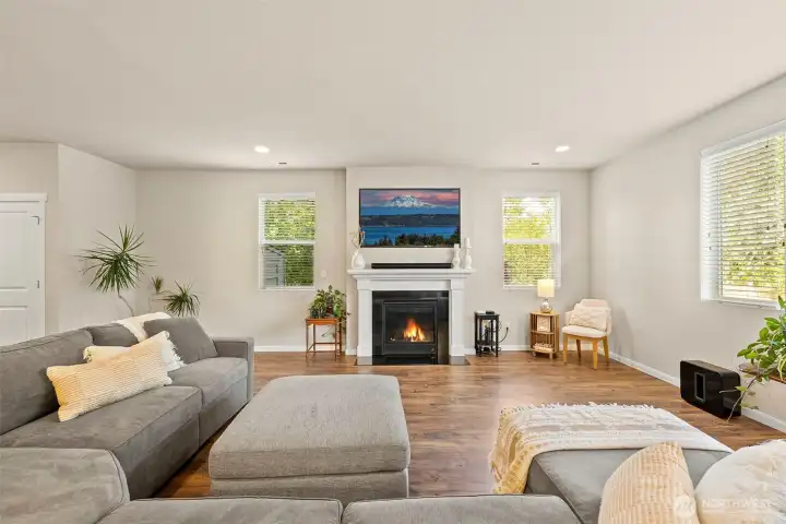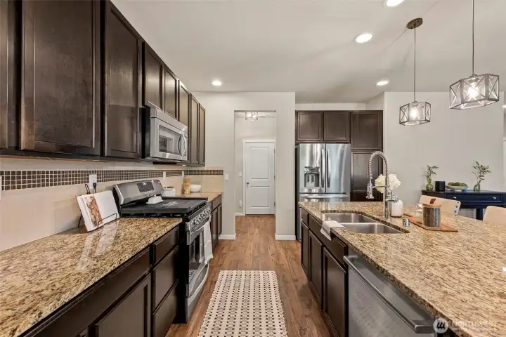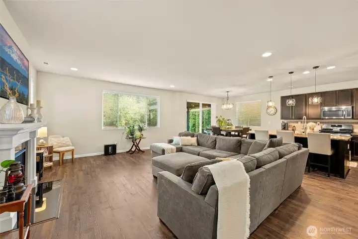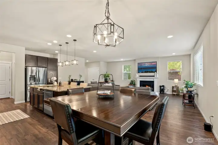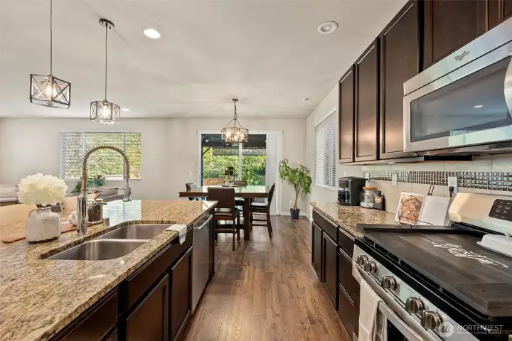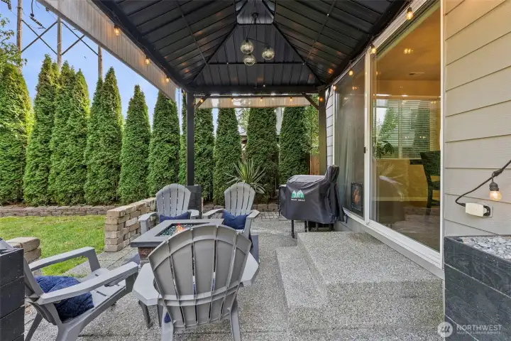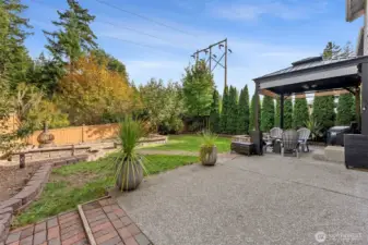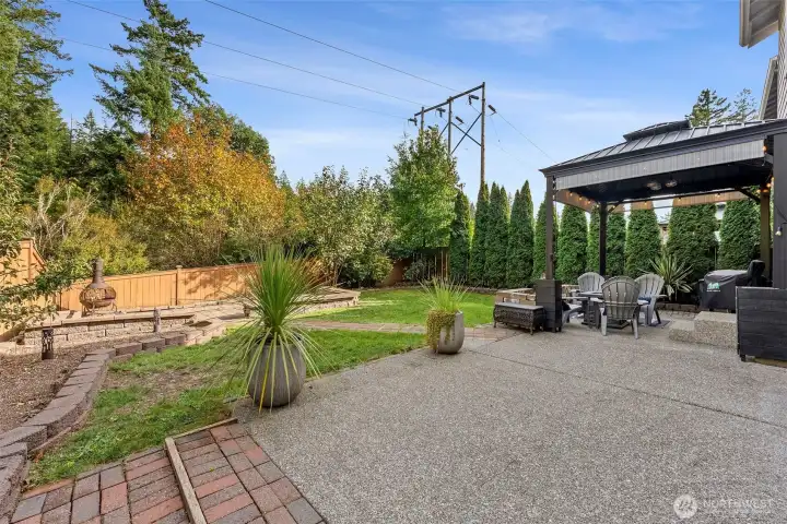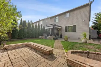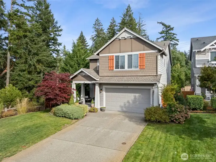 Beautiful open-concept home filled with natural light! The spacious layout features a stylish kitchen with granite countertops, a large island with seating, stainless steel appliances, a walk-in pantry, & a mudroom-all designed with entertaining in mind. Upstairs offers all bedrooms plus a convenient laundry room and versatile flex space. The oversized primary bedroom includes a five piece bath and a generous walk-in closet or dressing area. Enjoy seamless indoor-outdoor living with an aluminum pergola featuring sunshades over the patio and fully fenced backyard- perfect for gatherings or relaxing evenings. Situated next to a greenbelt for added privacy, this home combines comfort, functionality, and Northwest charm in a beautiful setting!