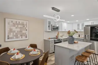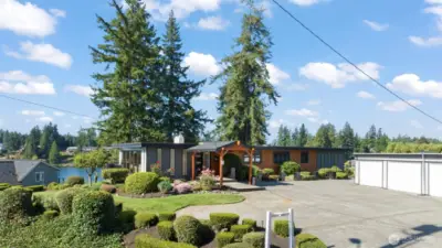 Experience modern luxury on Lake Tapps in Driftwood Point. This reimagined legacy estate offers 130’ ft of rare, private waterfront with a private dock, creating unparalleled setting of beauty and seclusion. Interiors showcase dual gourmet kitchens, dual primary suites, and spa-inspired baths with designer finishes. A dramatic gabled entry, shiplap-accented staircase, custom black railings, and expansive windows frame sweeping lake vistas and stunning Mount Rainier views. Outdoors, mature landscaping, fruit trees, & multiple entertaining spaces complement a detached 4-car garage with 1500+ sq ft and an income-generating ADU. Located in the highly desirable Dieringer School District, this estate is private, sophisticated, and one-of-a-kind
