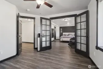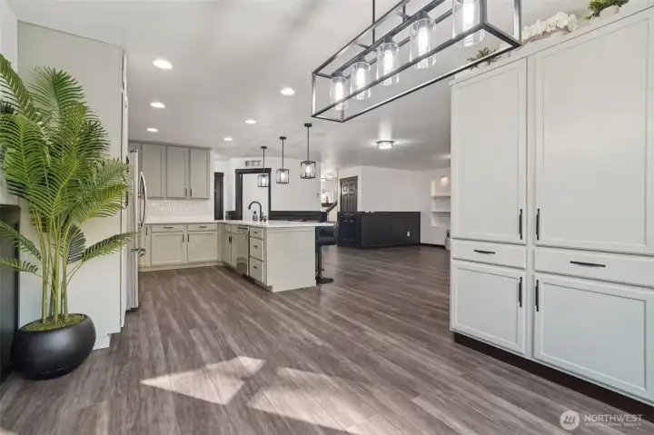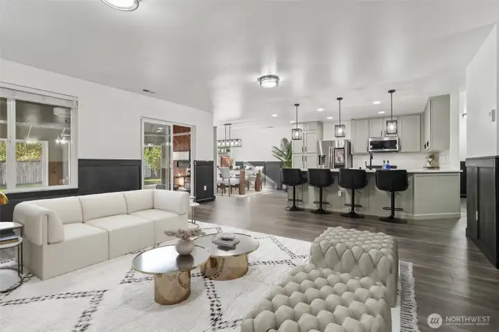 Step into this stunning home featuring an open, light-filled layout designed for comfort and versatility. The modern kitchen shines with shaker cabinets, stainless steel appliances, ample built in storage, and plenty of counter space. Enjoy a spacious primary suite with a luxurious 5-piece bath and walk-in closet. French doors open to a flexible den, office, or 6th bedroom, with three additional bedrooms and a full bath upstairs. The main level includes a guest bedroom, full bath, and convenient laundry room. A fully enclosed sunroom leads to the large backyard with a paved patio, basketball hoop, and a low-maintenance turf front yard plus a 3-car garage. Move in ready!
